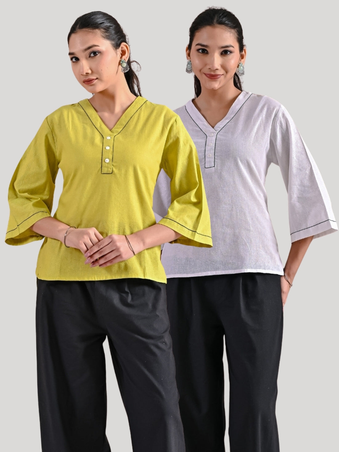 Pack Of 2 Parrot Green And White Handloom Cotton Anchor Thread Designer Tops