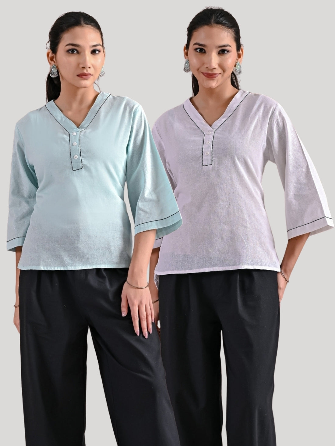 Pack Of 2 Denim Blue And Purple Handloom Cotton Anchor Thread Designer Tops