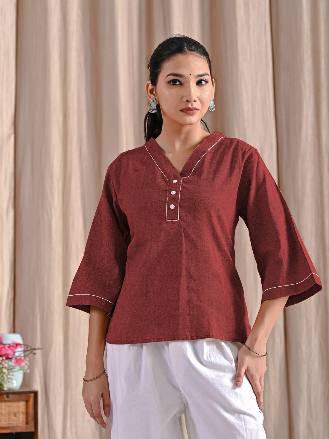 Maroon Handloom Cotton Anchor Thread Designer Top