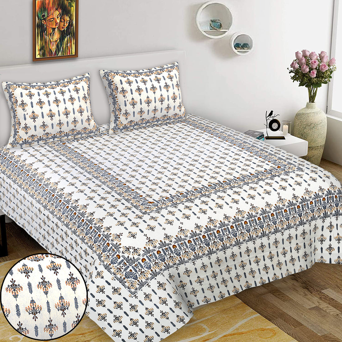 Bring home a touch of Rajasthan’s royal artistry with our Sanganeri Print Jaipur Bedsheet. Handcrafted...