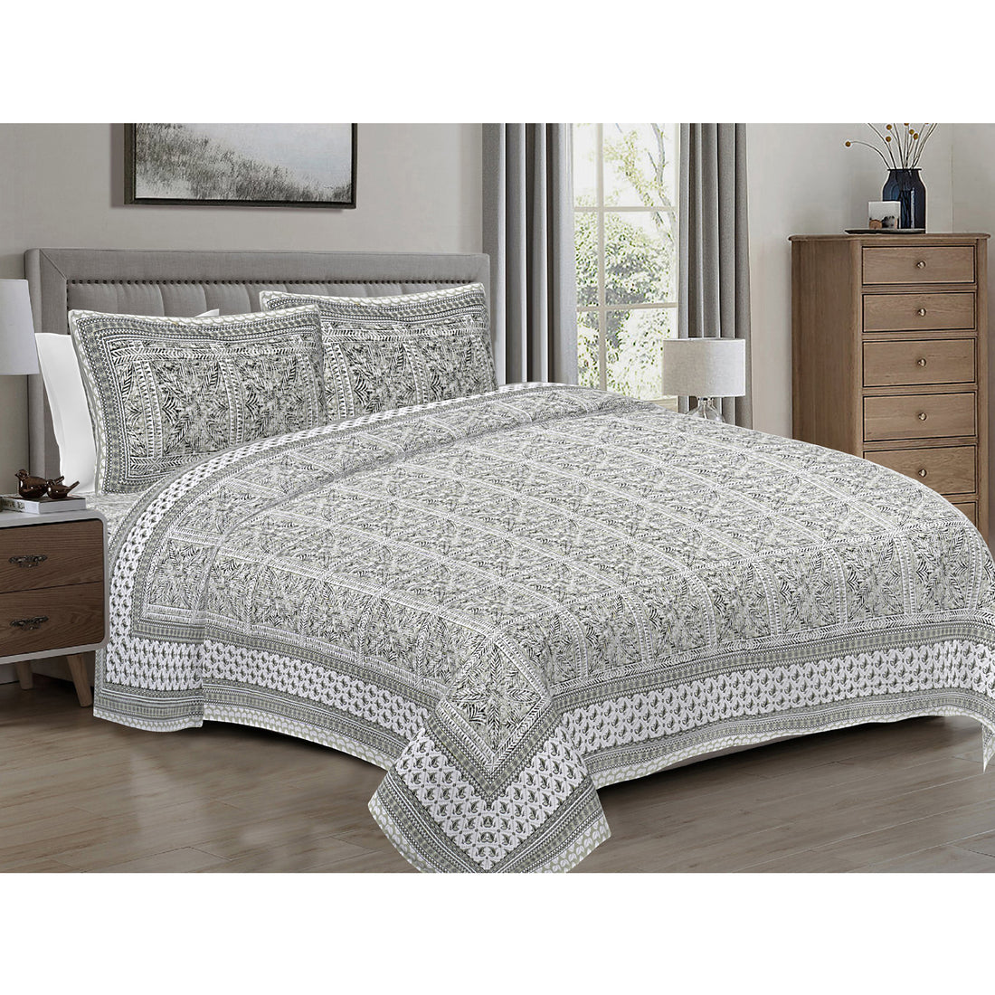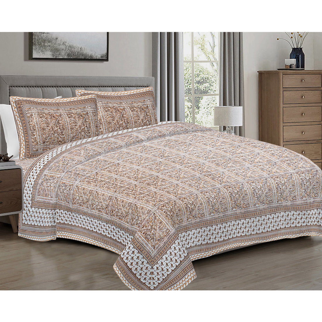 Bring home a touch of Rajasthan’s royal artistry with our Sanganeri Print Jaipur Bedsheet. Handcrafted...