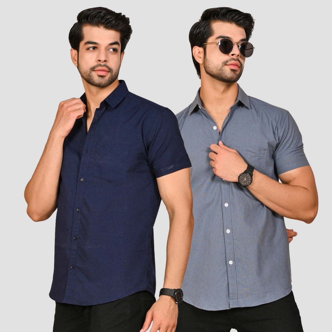 Navy Blue And Grey Half Sleeve Linen Shirt Combo