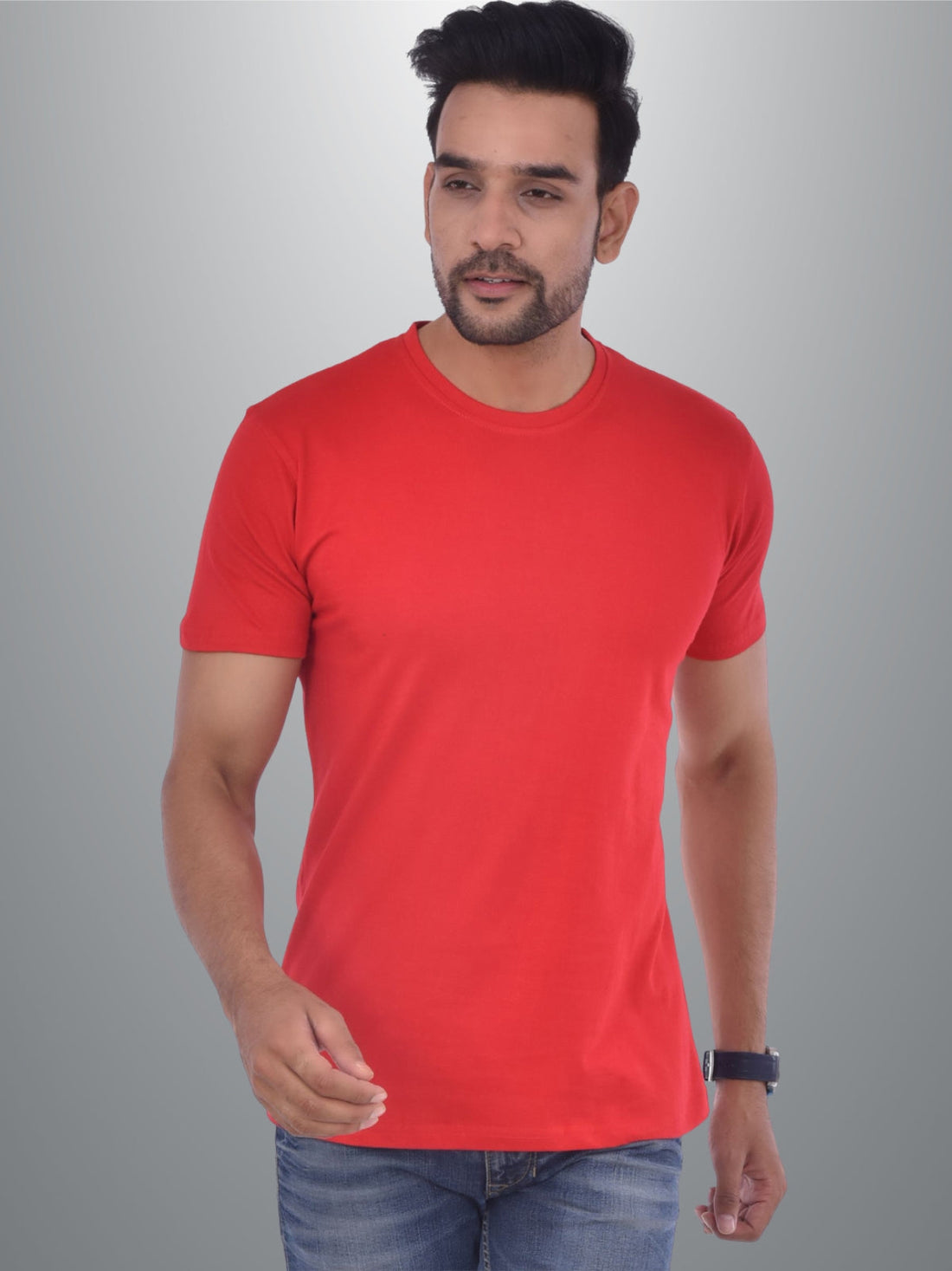 Mens Solid Round Neck Half Sleeve Cotton Blend Red T-shirt