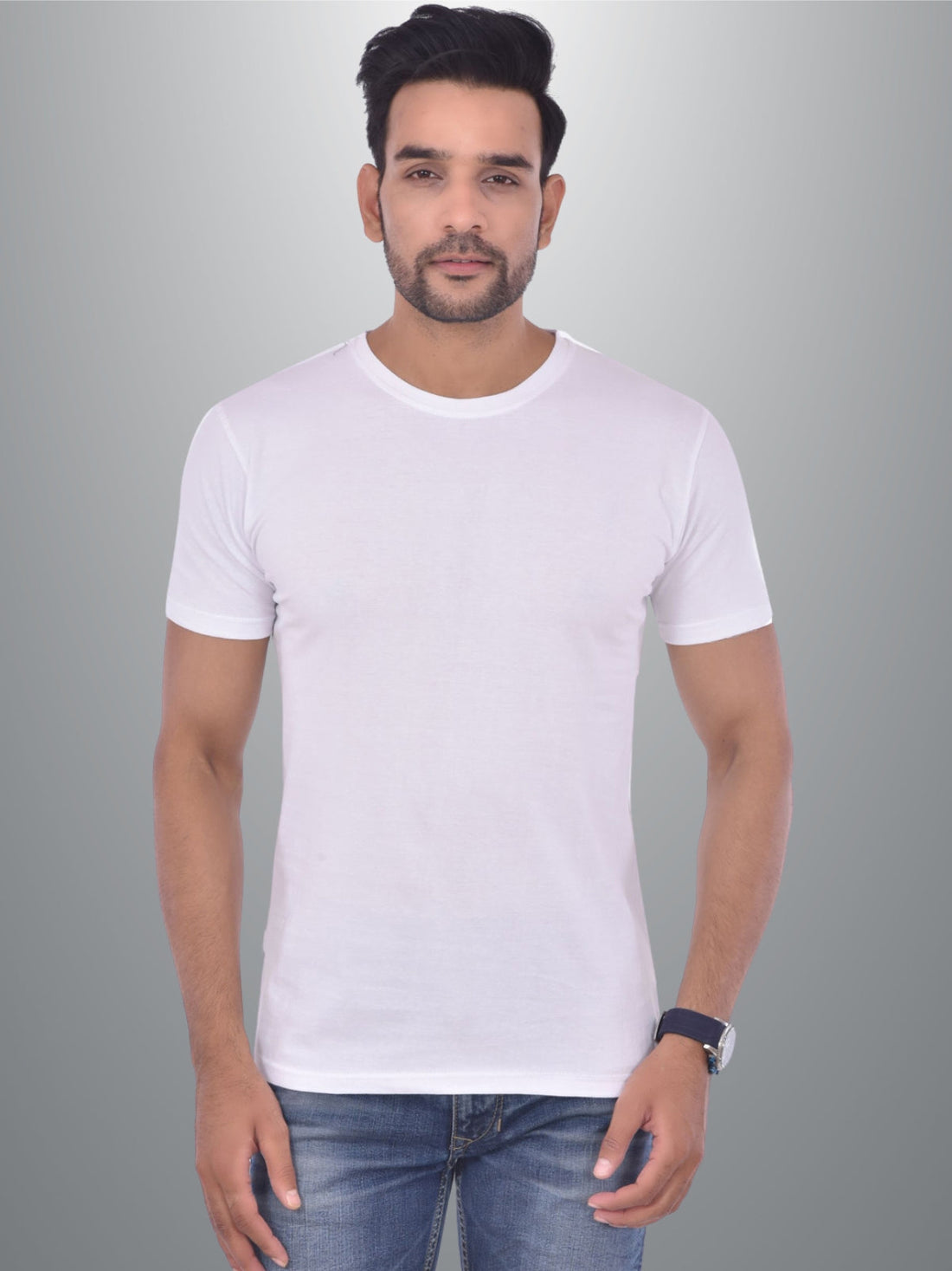 Mens Solid Round Neck Half Sleeve Cotton Blend White T-shirt