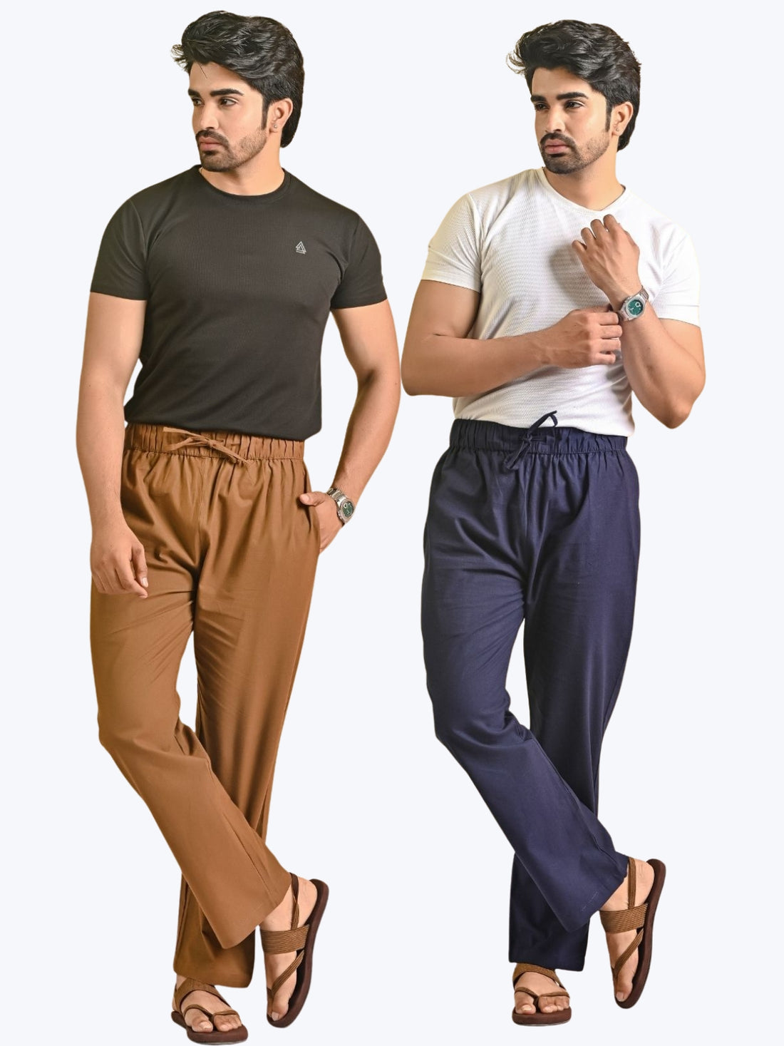 Brown And Navy Blue Loose Fit Cotton Pajama Combo
