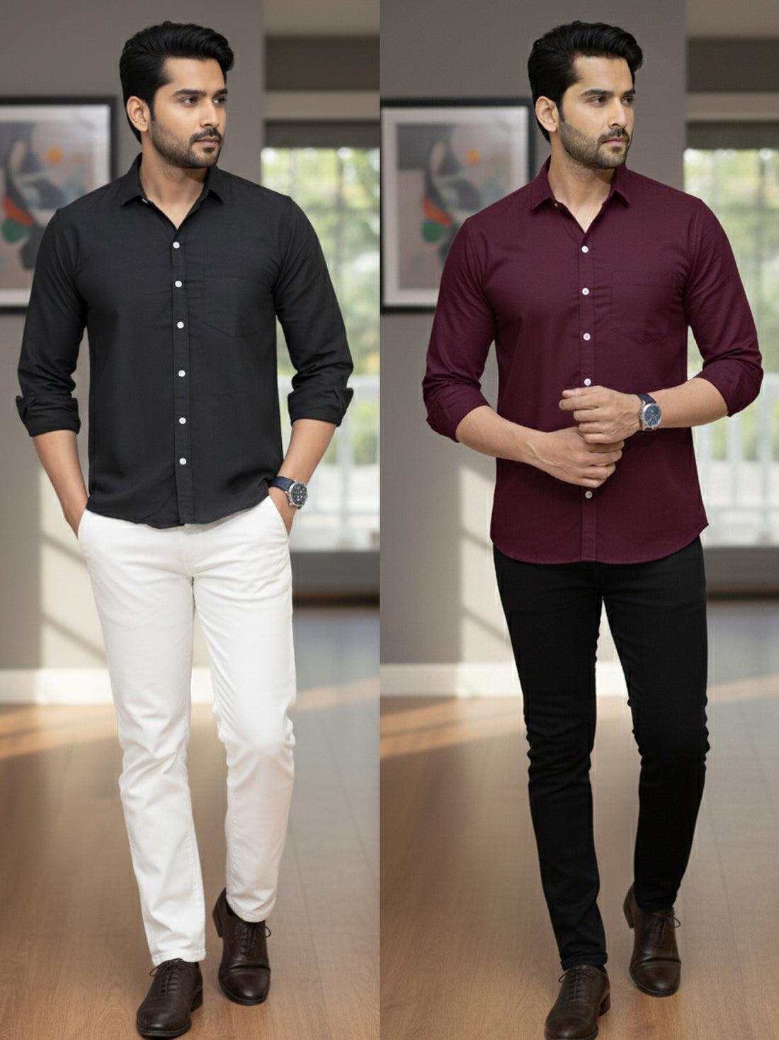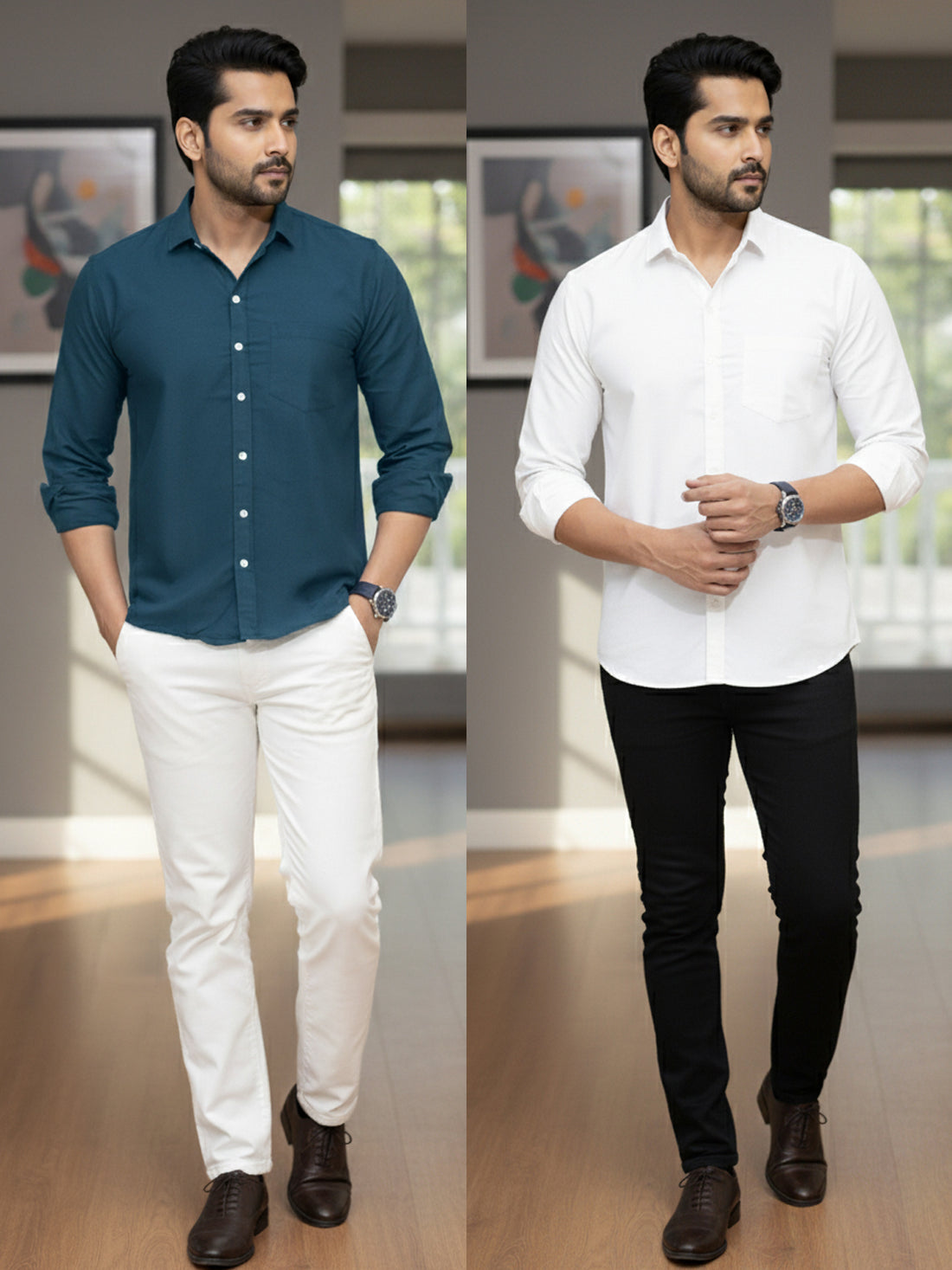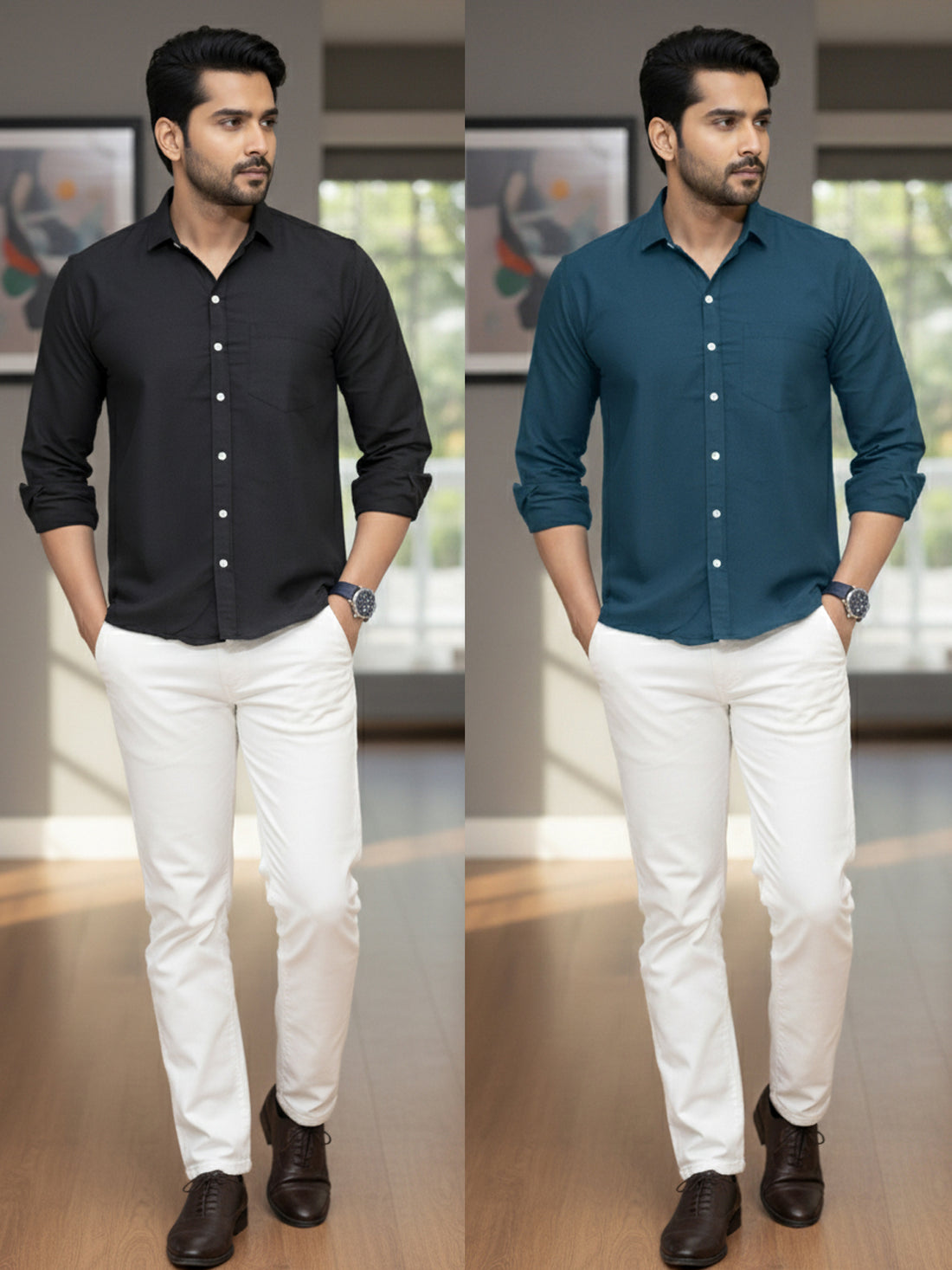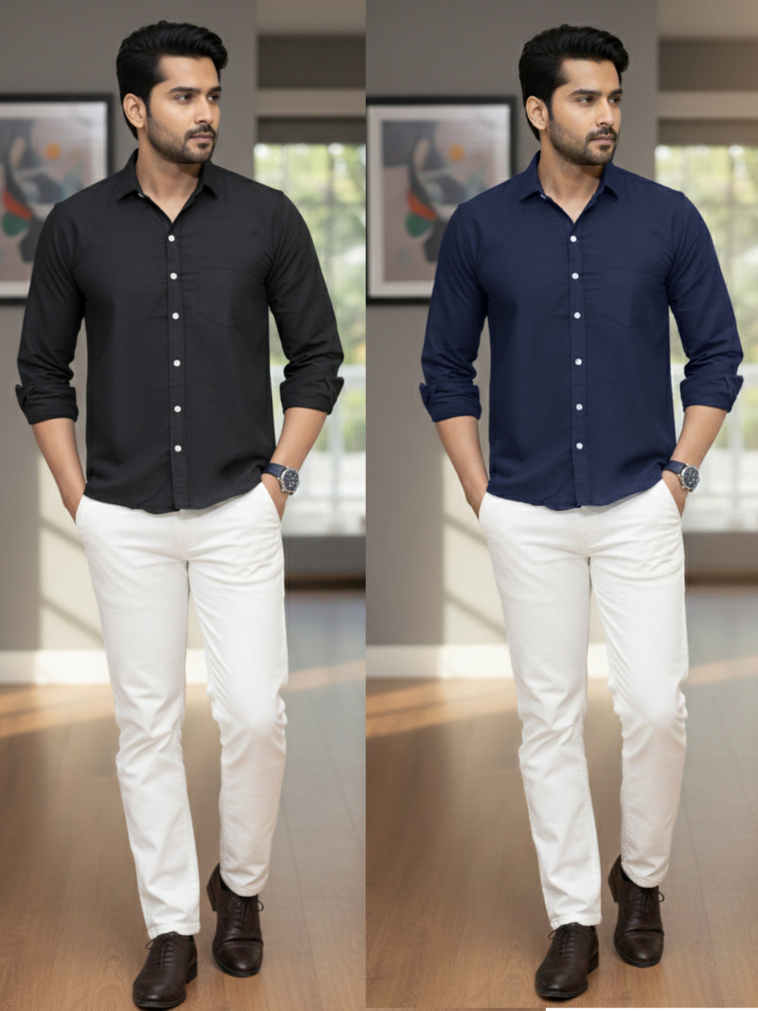 These stylish men's Airy linen shirts Combo with a solid color design will give your...