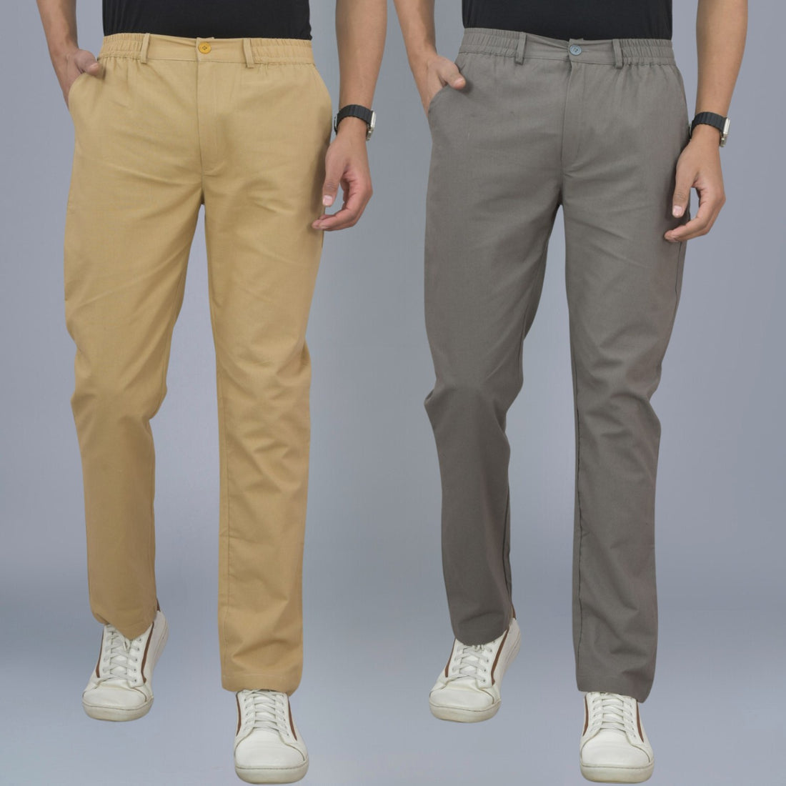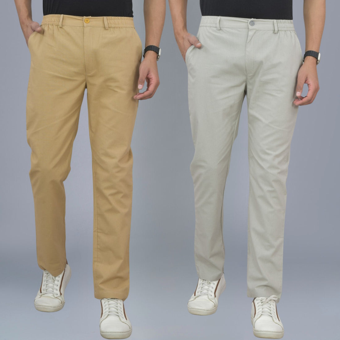 Pack Of 2 Beige And Grey Airy Linen Summer Cool Cotton Comfort Pants For Men