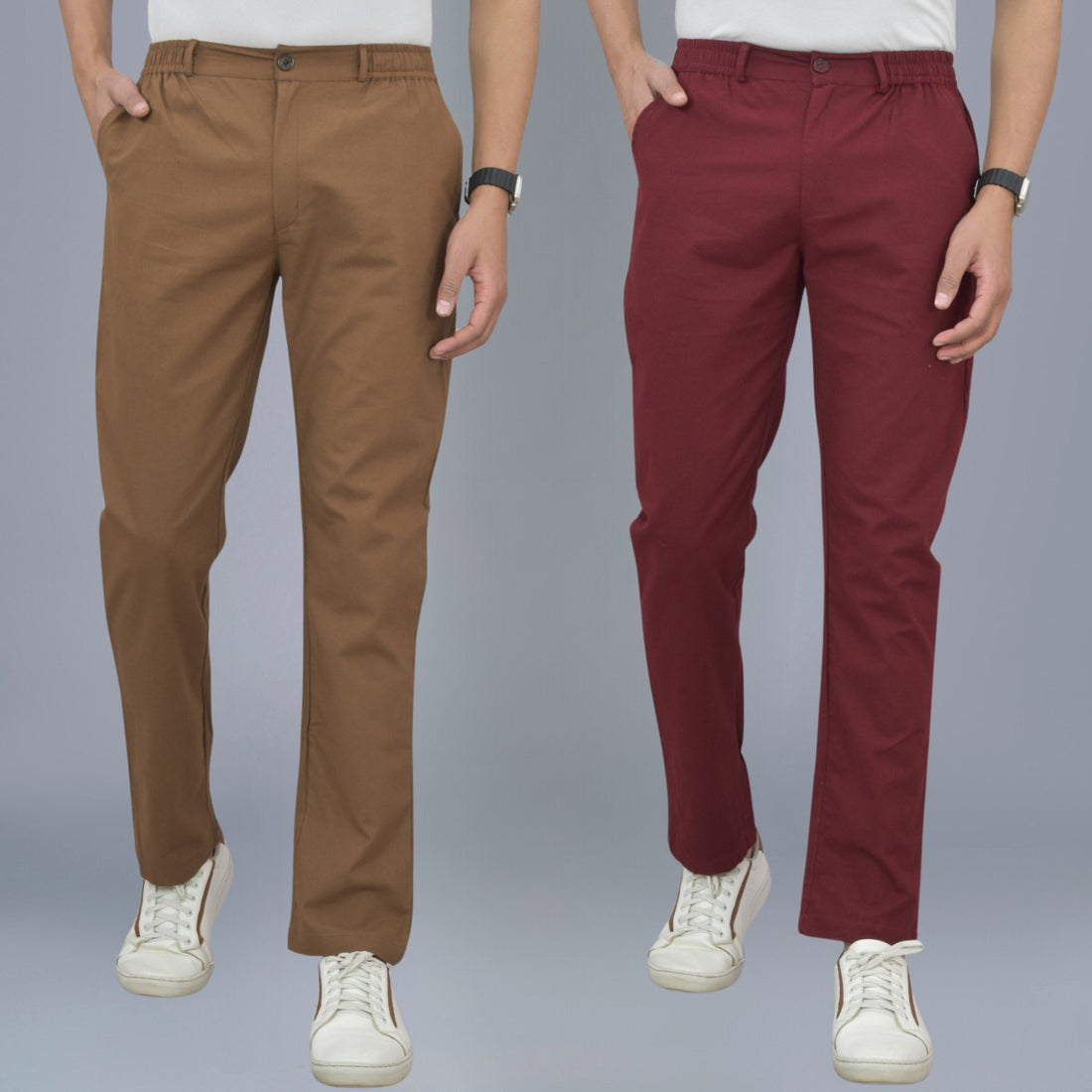 Pack Of 2 Brown And Wine Airy Linen Summer Cool Cotton Comfort Pants For Men