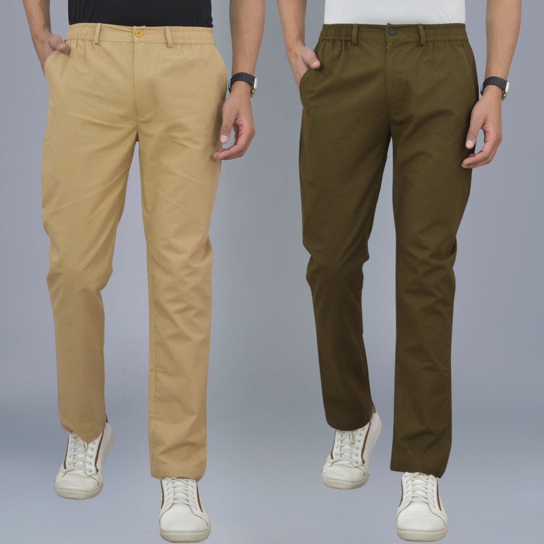 Pack Of 2 Beige And Mehendi Green Airy Linen Summer Cool Cotton Comfort Pants For Men