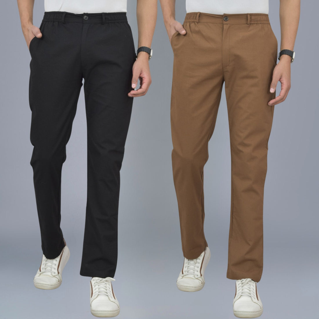 Pack Of 2 Black And Brown Airy Linen Summer Cool Cotton Comfort Pants For Men