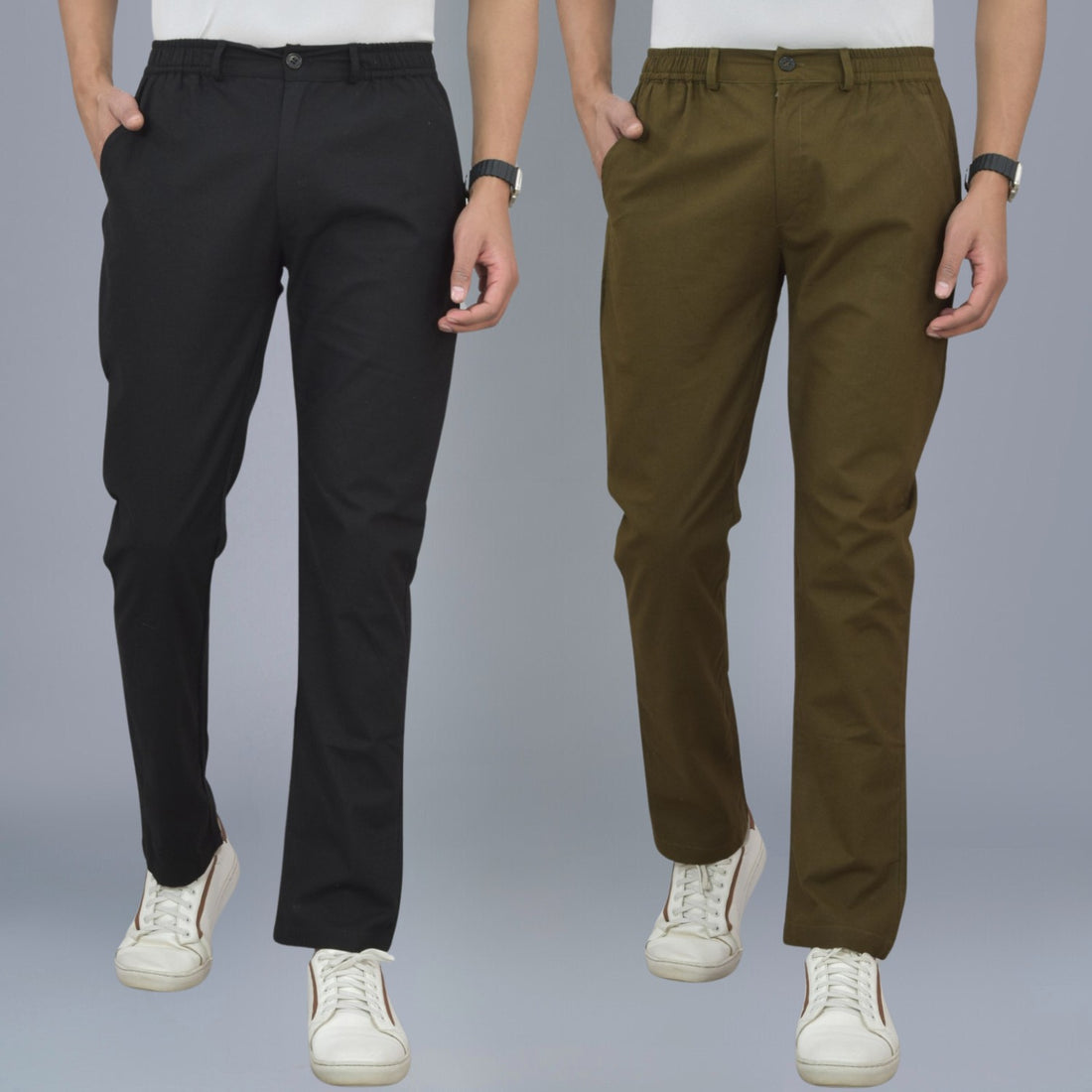 Pack Of 2 Black And Mehendi Green Airy Linen Summer Cool Cotton Comfort Pants For Men