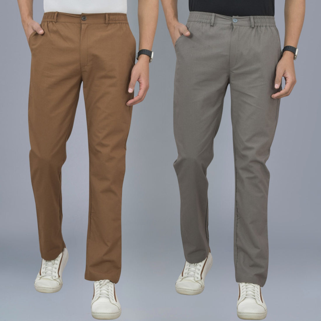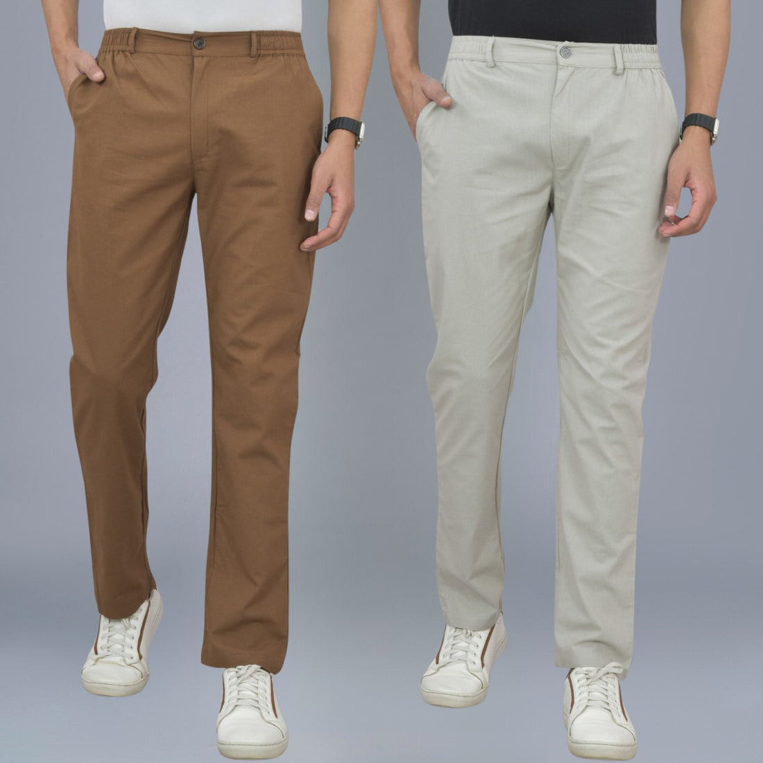 Pack Of 2 Brown And Grey Airy Linen Summer Cool Cotton Comfort Pants For Men