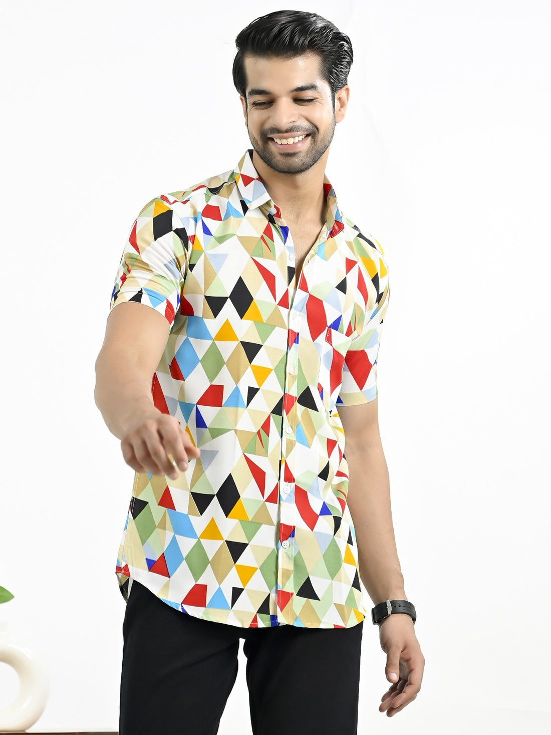Mens Yellow Geomatric Printed Half Sleeve Crepe Shirt