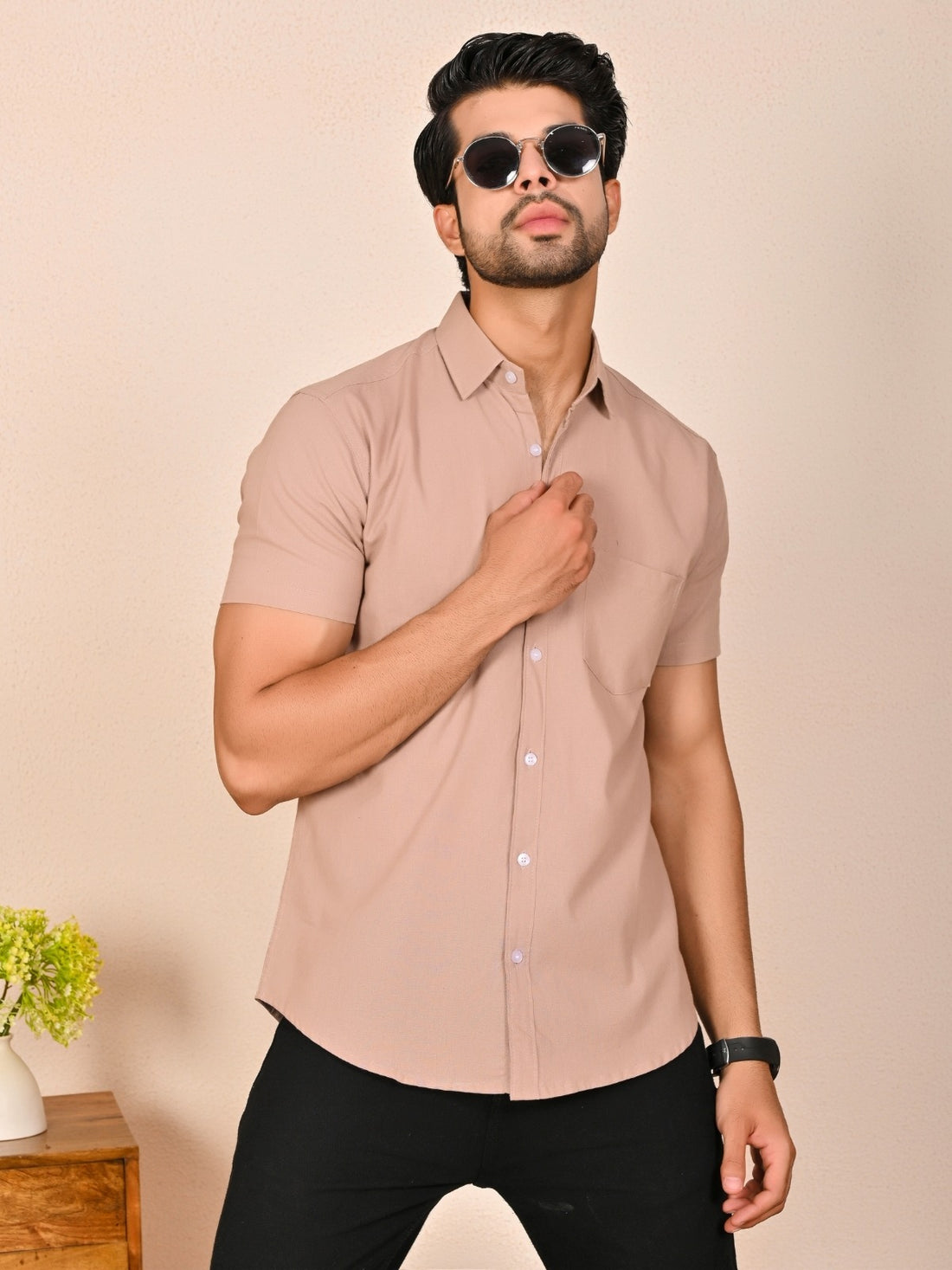Mens solid Teal Blue Half Sleeve Cotton shirt