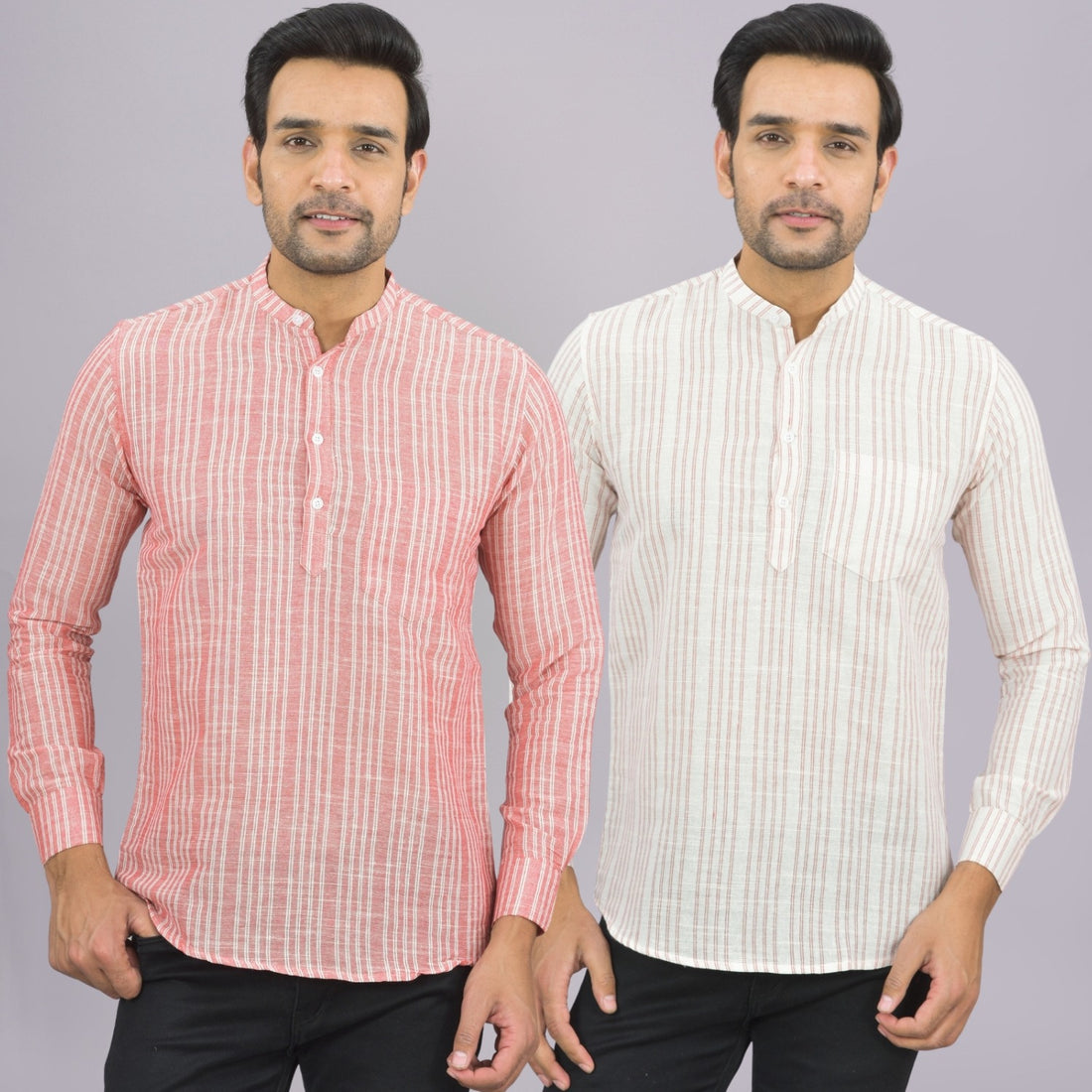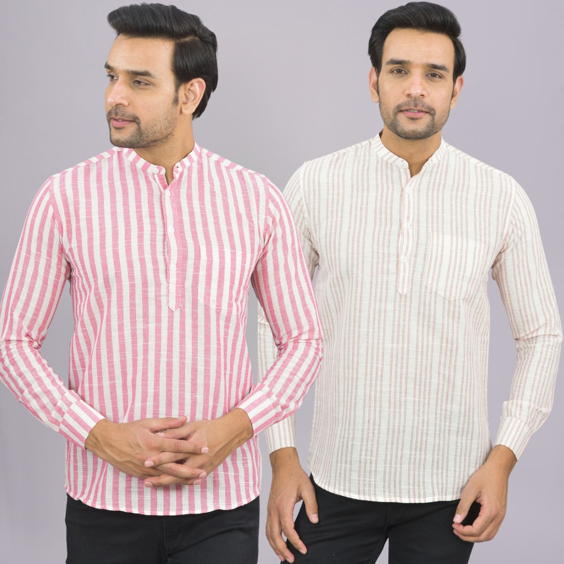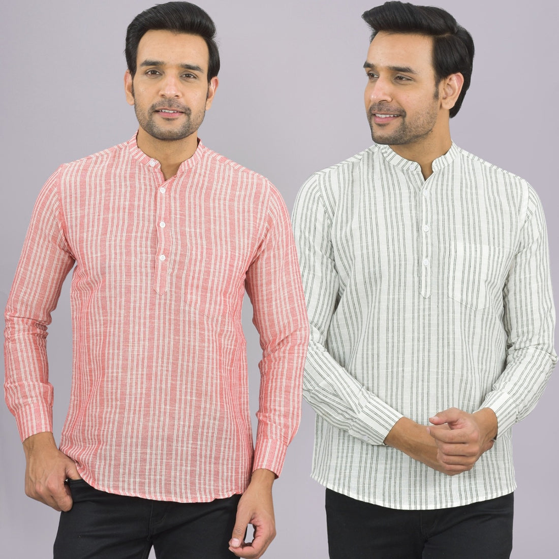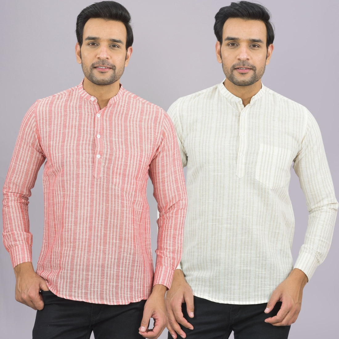 Our Pack of 2 Mens Multistriped Linen Slub Short Kurta will up your style score....