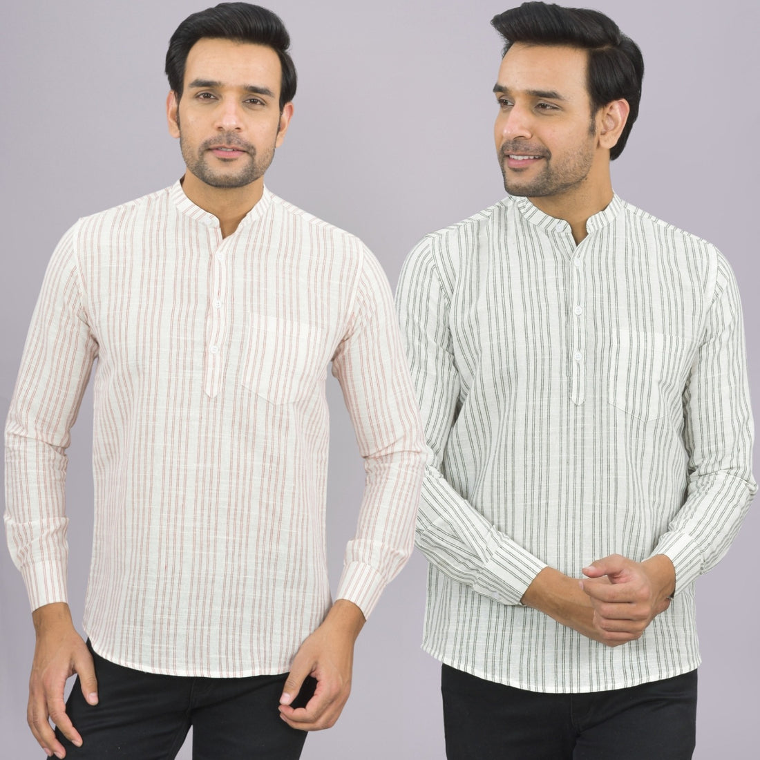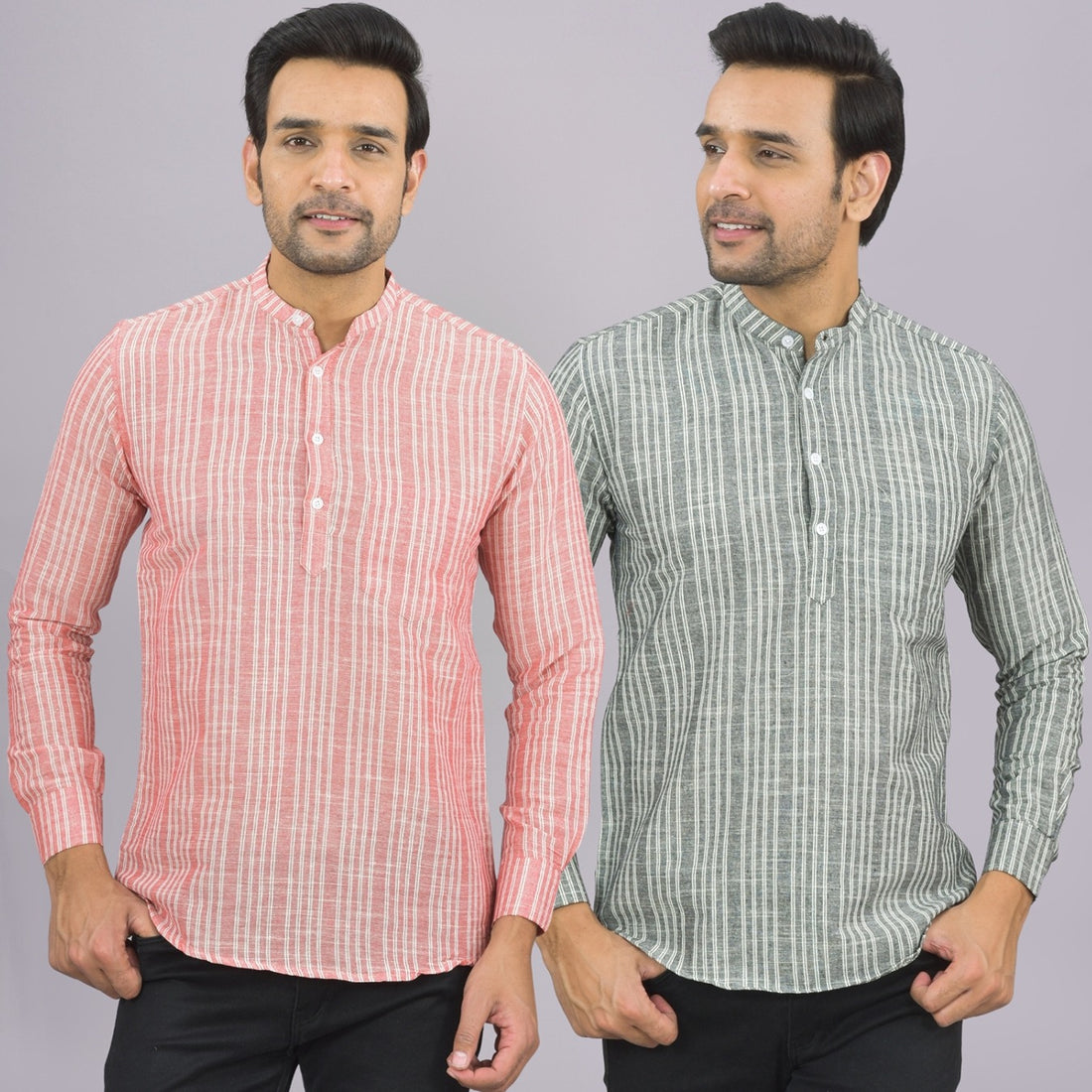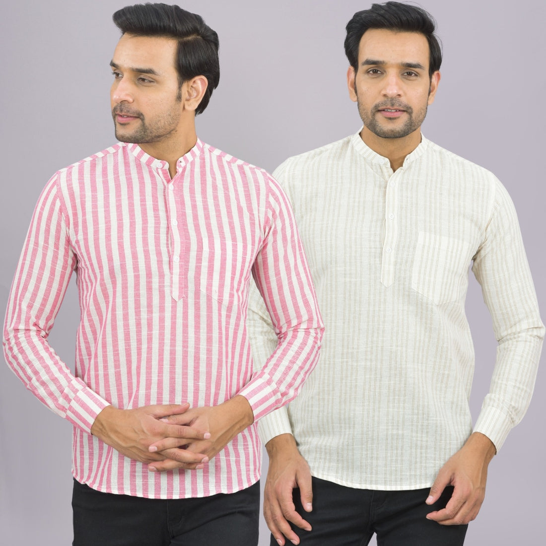 Our Pack of 2 Mens Multistriped Linen Slub Short Kurta will up your style score....