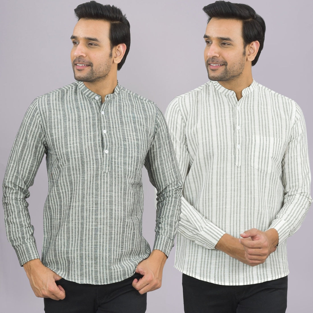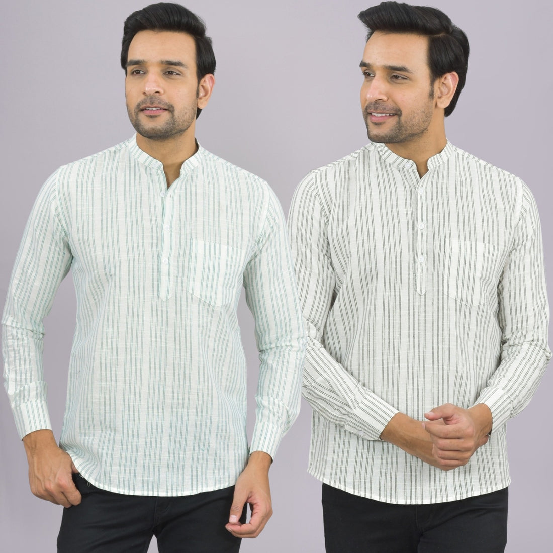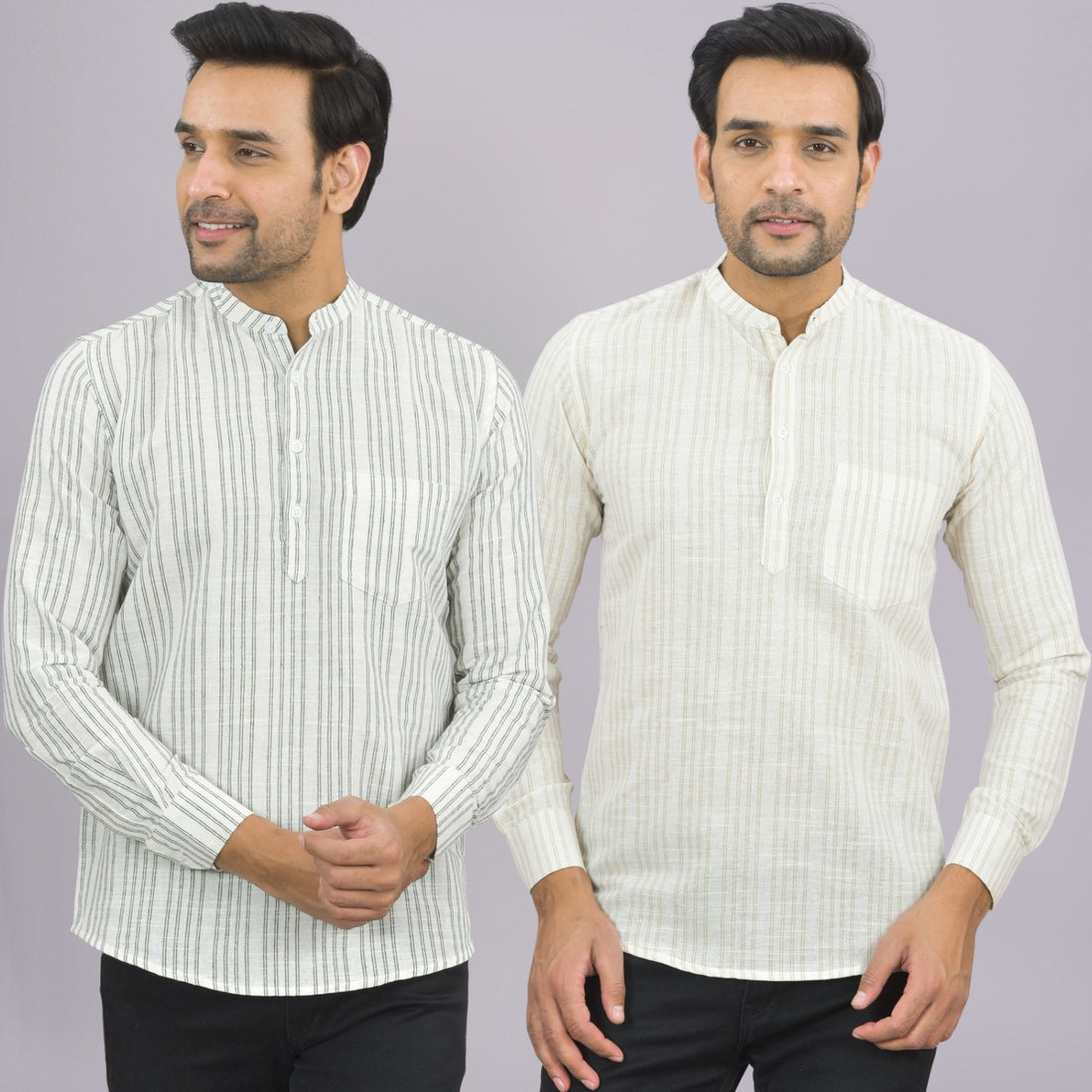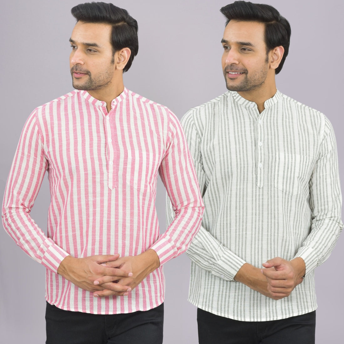 Our Pack of 2 Mens Multistriped Linen Slub Short Kurta will up your style score....