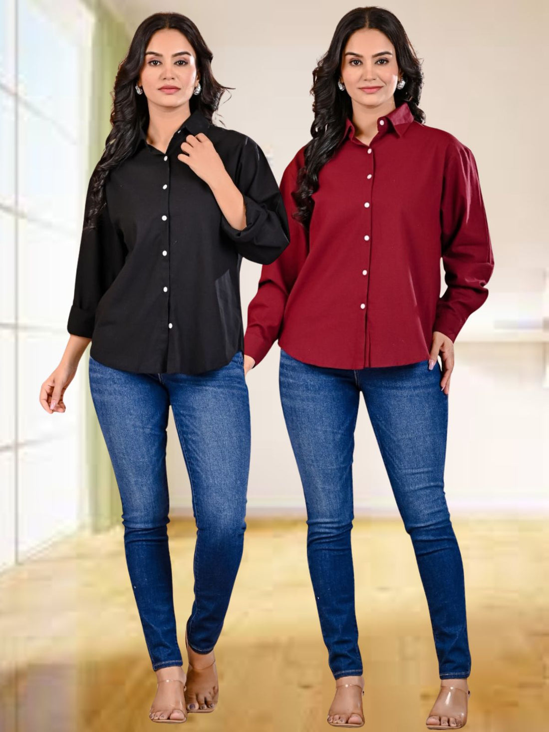Pack Of 2 Womens Black And Wine Cotton Loose Fit Shirt Combo