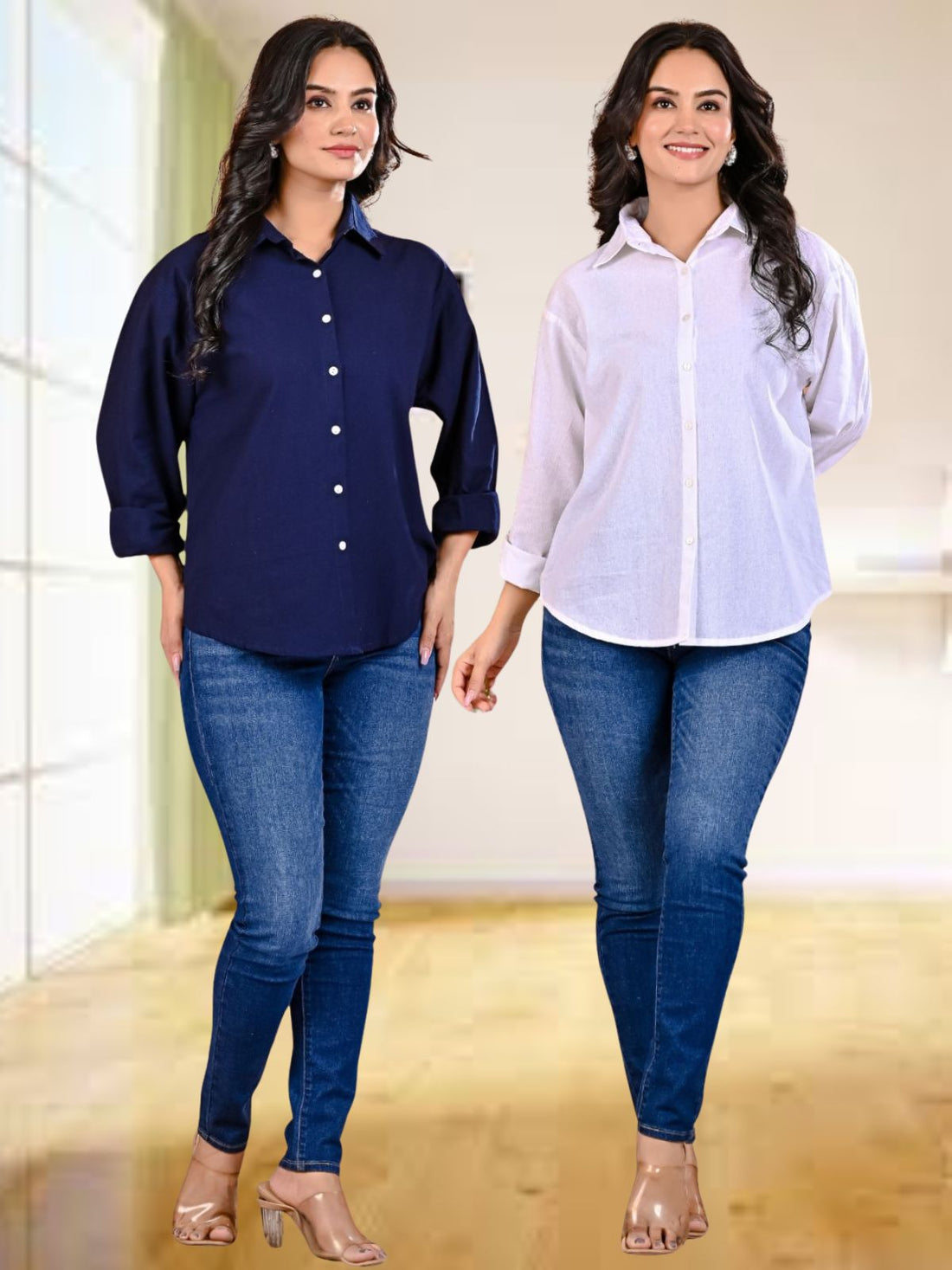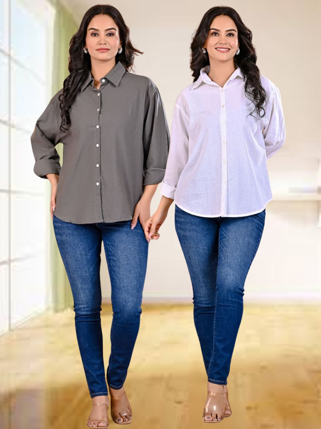 Upgrade your wardrobe with this Pack of 2 Women’s Loose Fit Shirt Combo in classic...