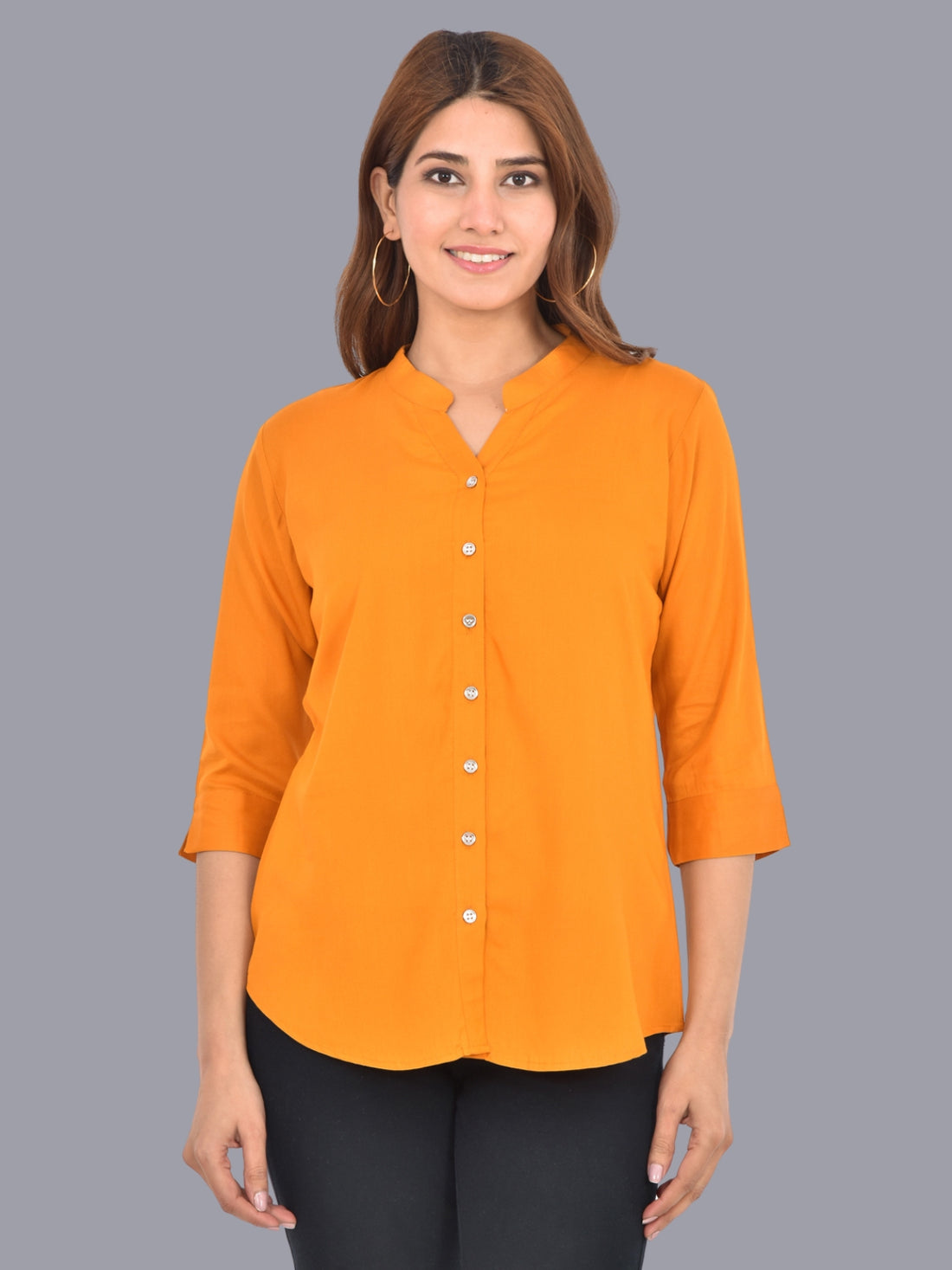 Womens Mustard Regular Fit Chinese Collar Rayon Shirt