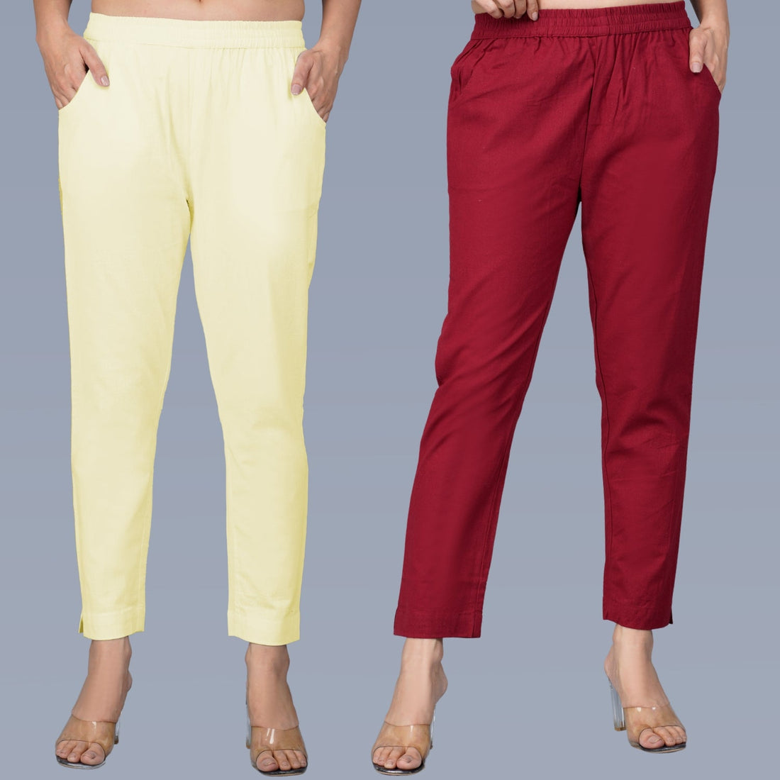 Pack Of 2 Womens Regular Fit Cream And Maroon Fully Elastic Waistband Cotton Trouser
