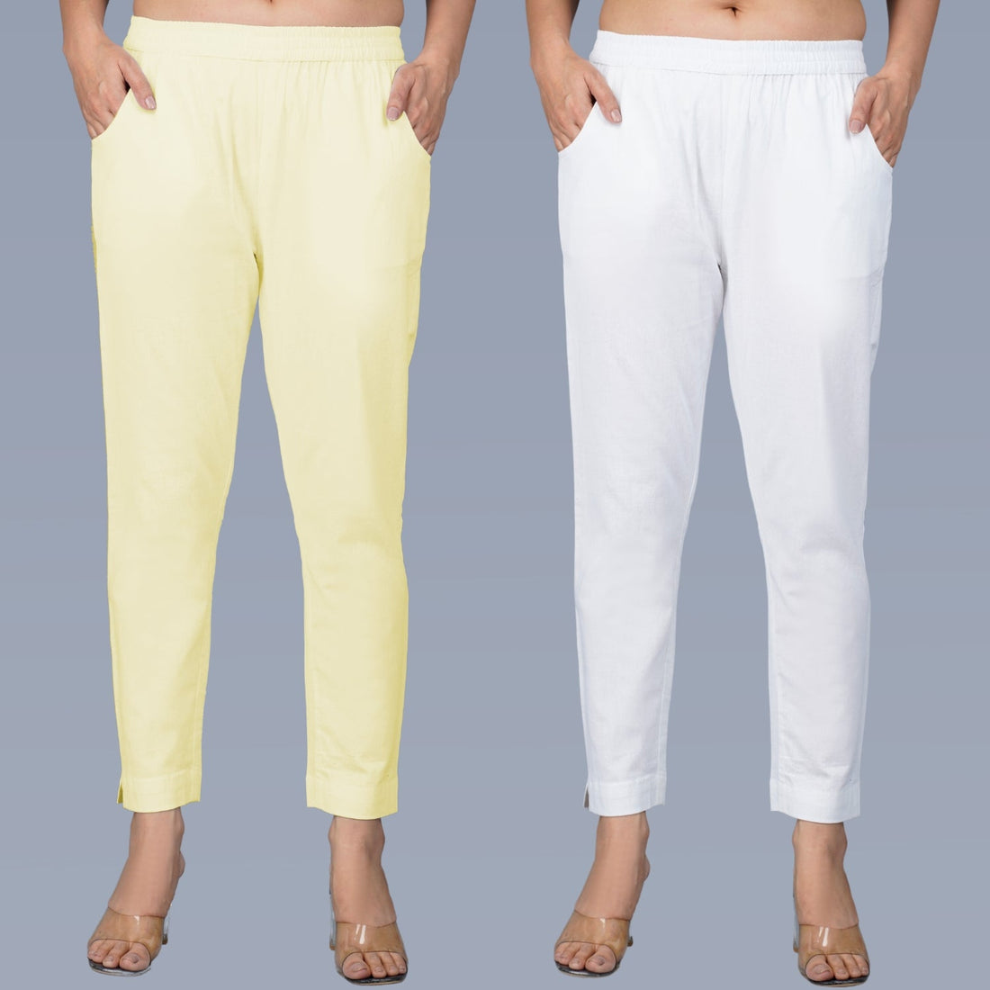 Pack Of 2 Womens Regular Fit Cream And White Fully Elastic Waistband Cotton Trouser