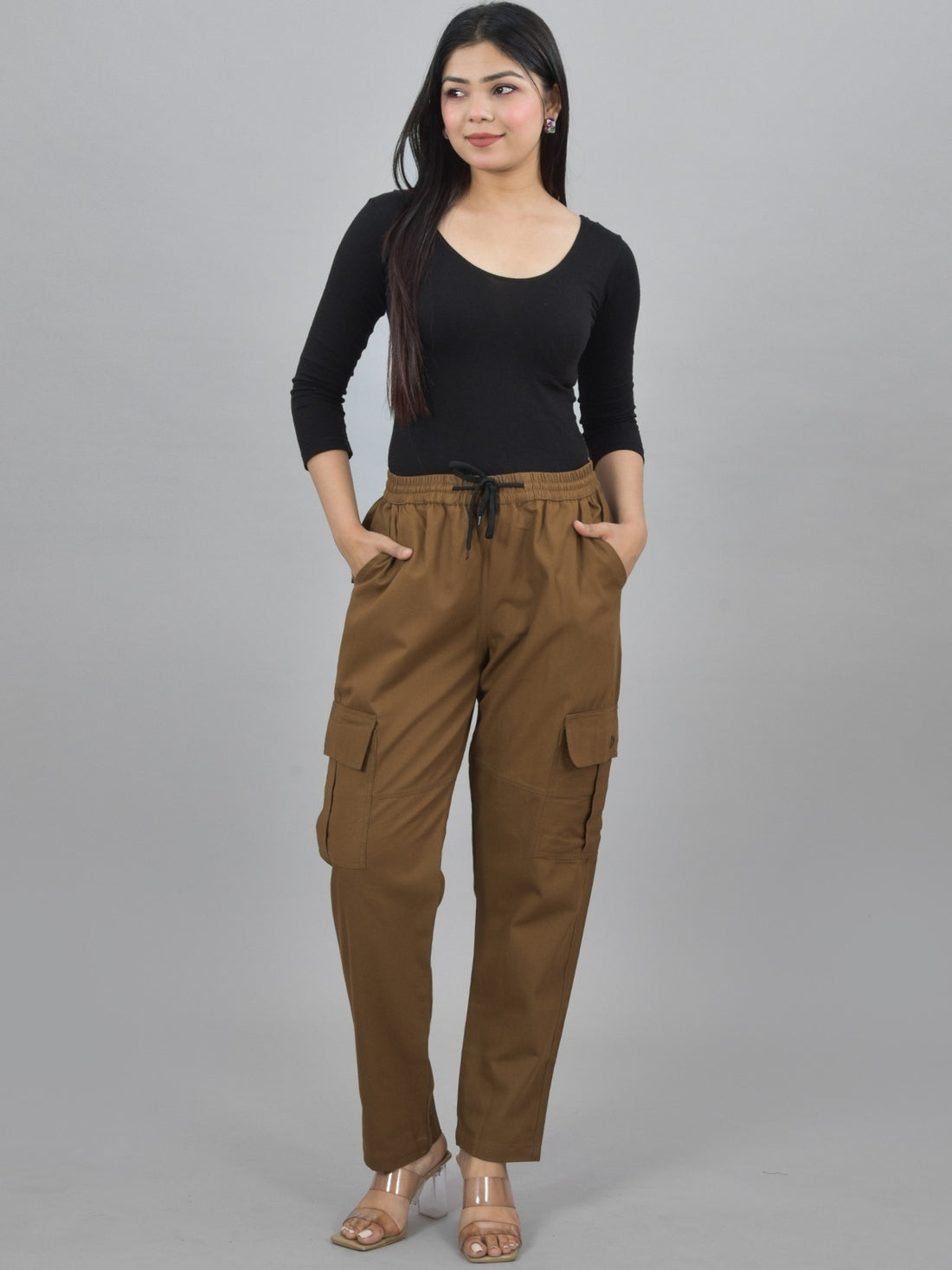 Womens Brown 5 Pocket Twill Straight Cargo Pant