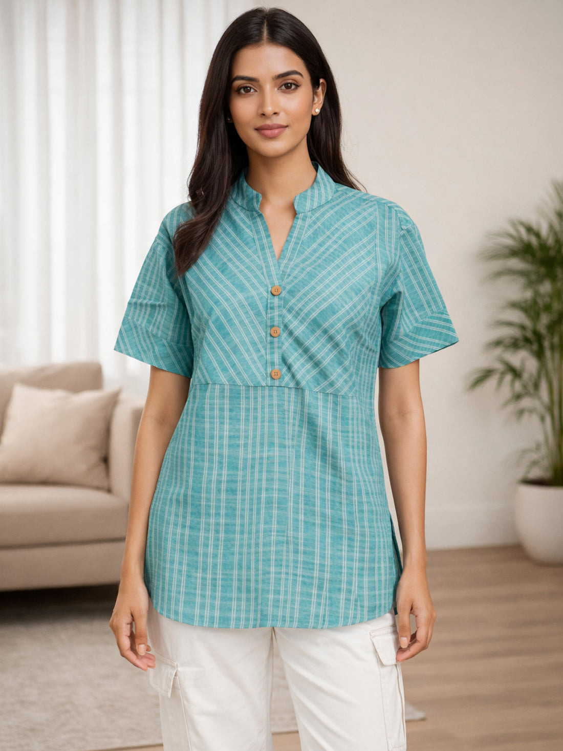 Women’s Light Green Stripe Yoke Top