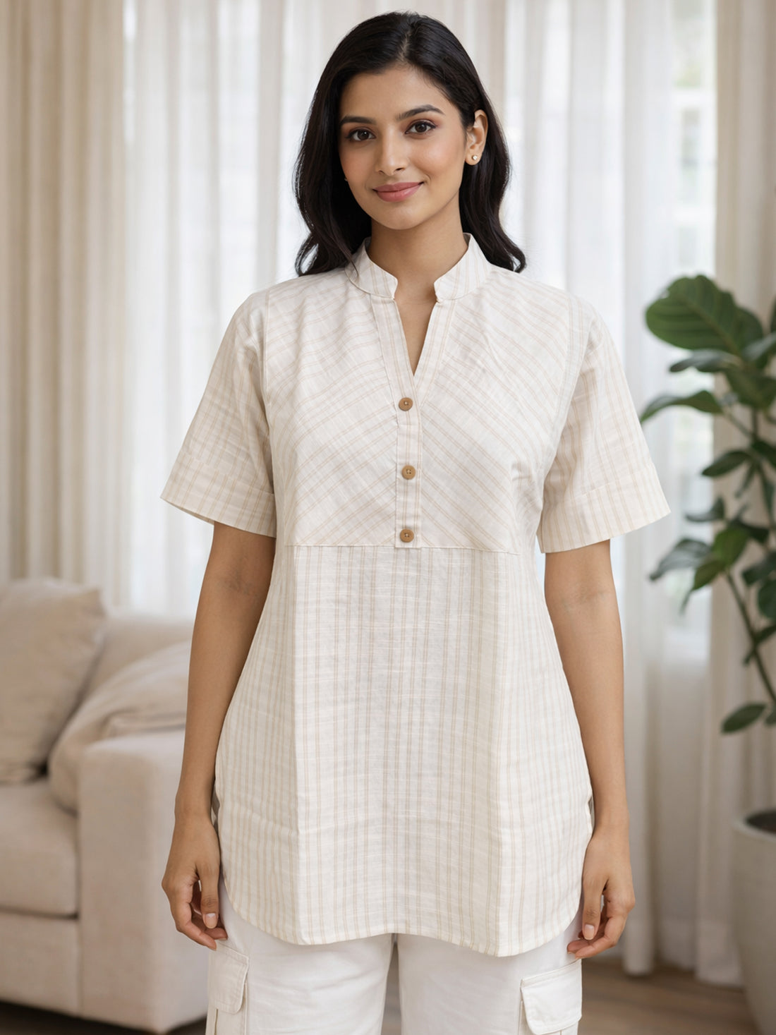 Women’s Light Brown Stripe Yoke Top