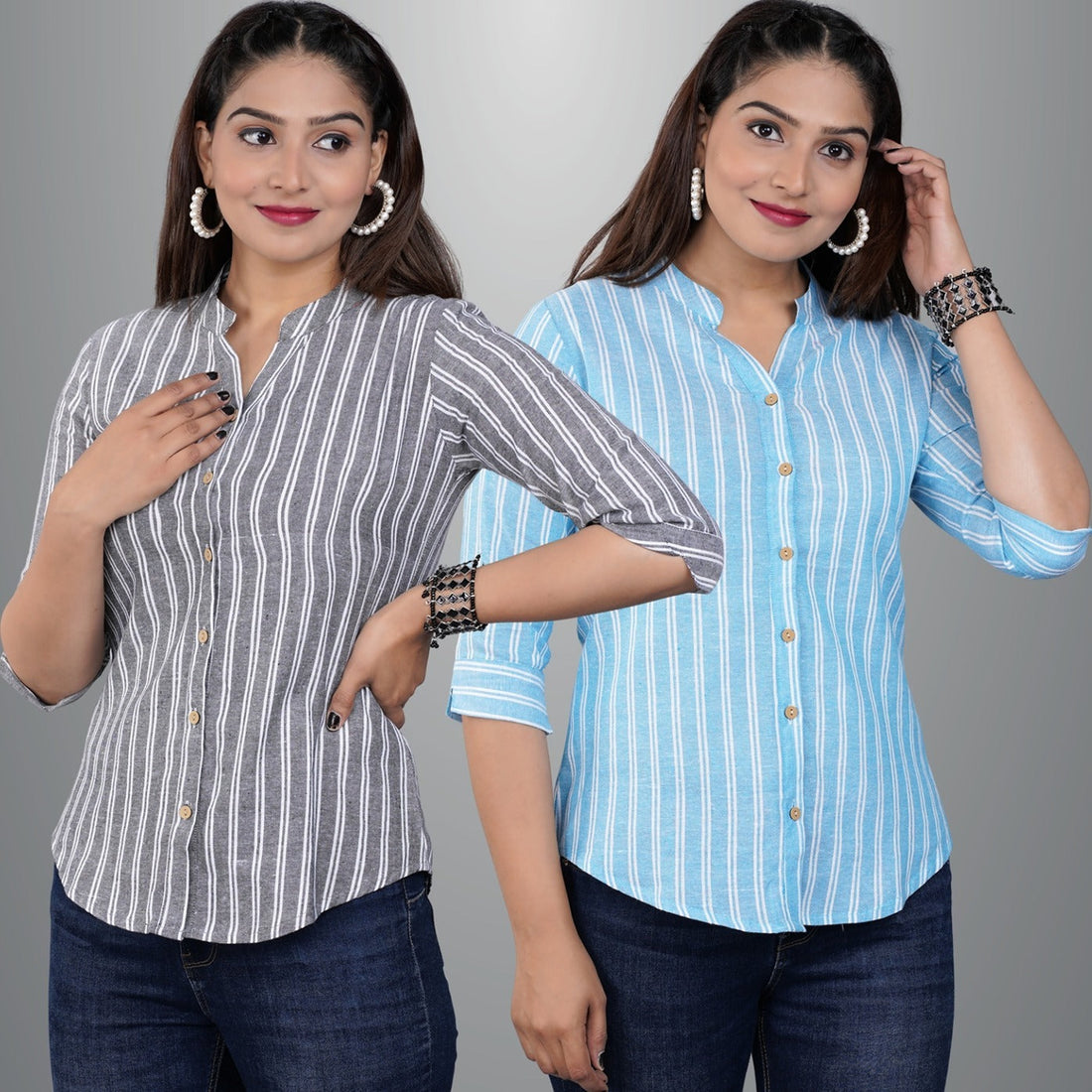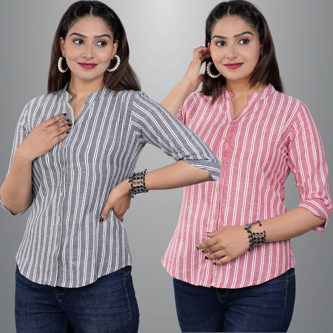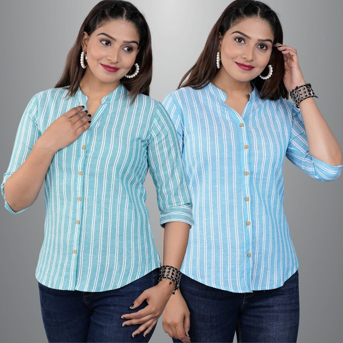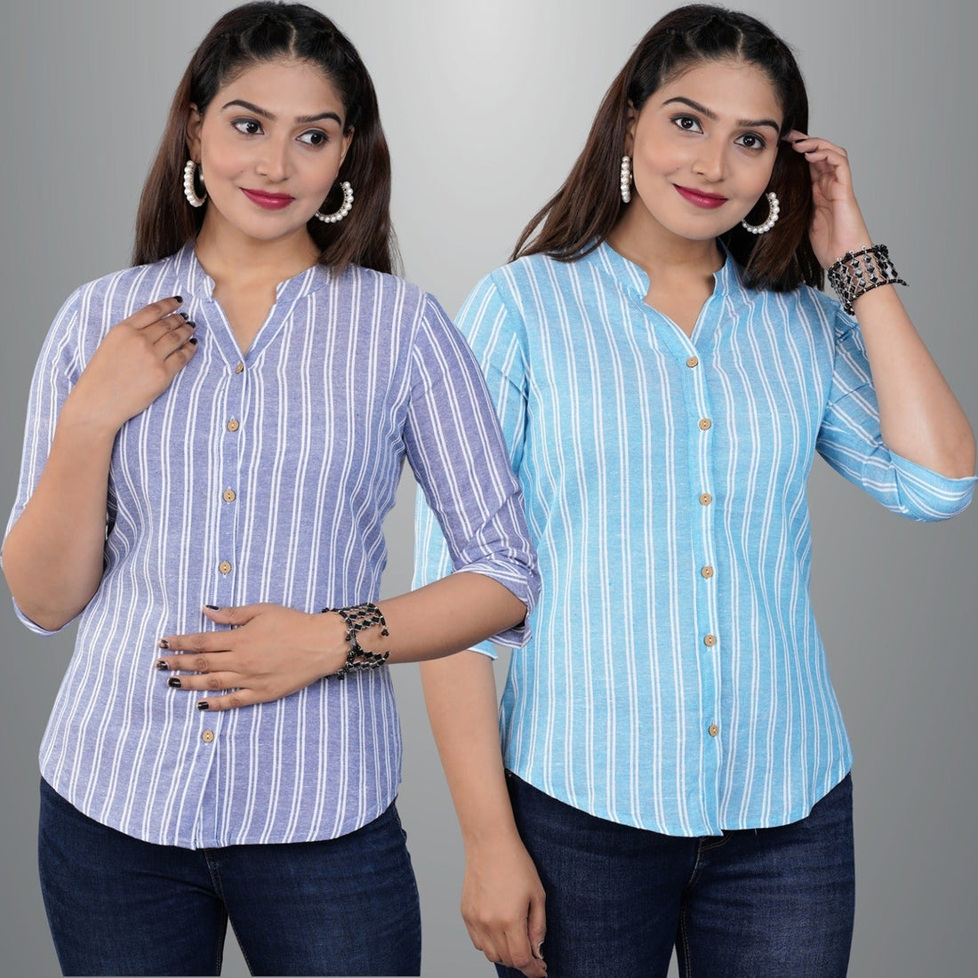 These Pack Of 2 Womens Cotton Striped Shirt Combo , is the ideal fusion of...