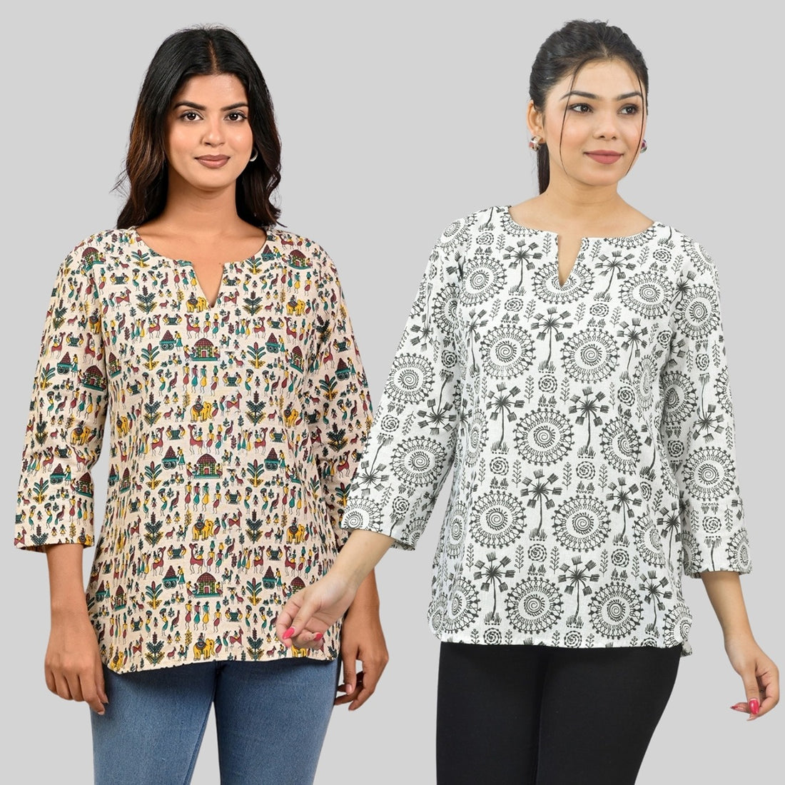 Pack Of 2 Womens Regular Fit Brown Multi Printed And Maroon Tribal Printed Tops Combo