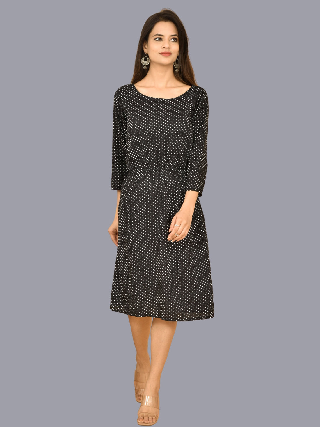 Womens Crepe Western Black Polka Dot A Line Short Dress