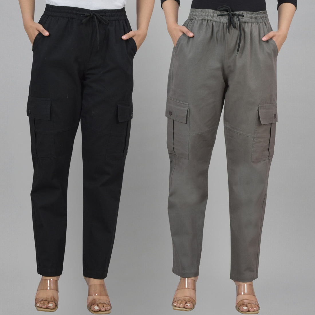 Pack Of 2 Womens Black And Grey 5 Pocket Twill Straight Cargo Pants