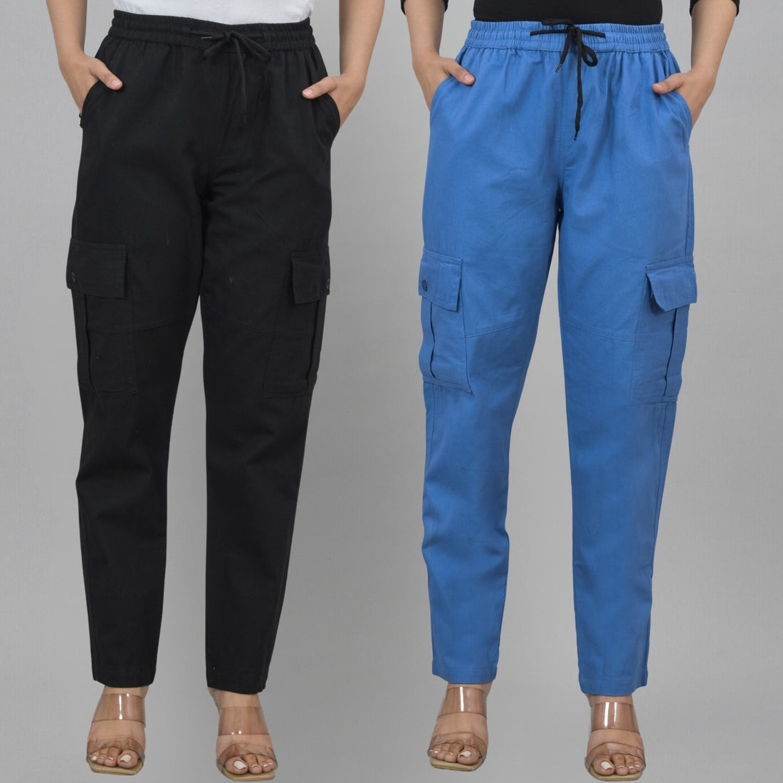 Pack Of 2 Womens Black And Blue 5 Pocket Twill Straight Cargo Pants