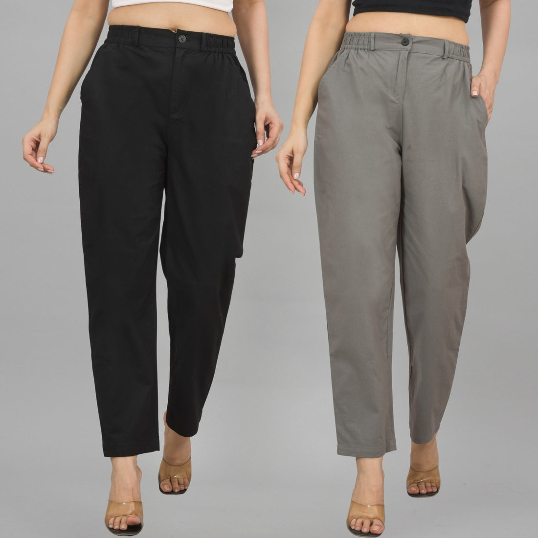 Combo Pack Of 2 Black And Grey Womens Cotton Formal Pants