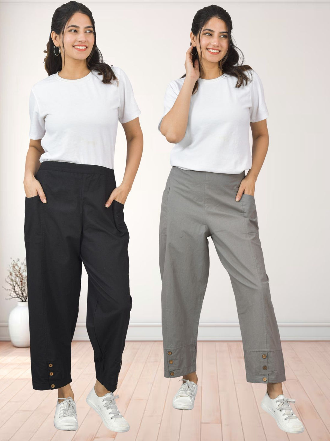 Combo Pack Of Womens Black And Grey Side Pocket Straight Cargo Pants