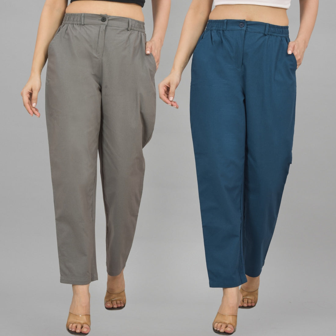 Combo Pack Of 2 Grey And Teal Blue Womens Cotton Formal Pants