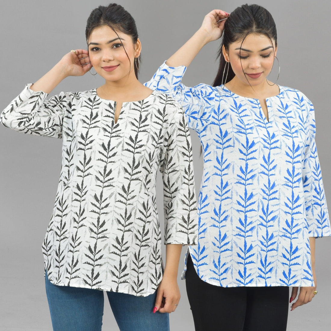 Pack Of 2 Womens Regular Fit Black Leaf And Blue Leaf Printed Tops Combo