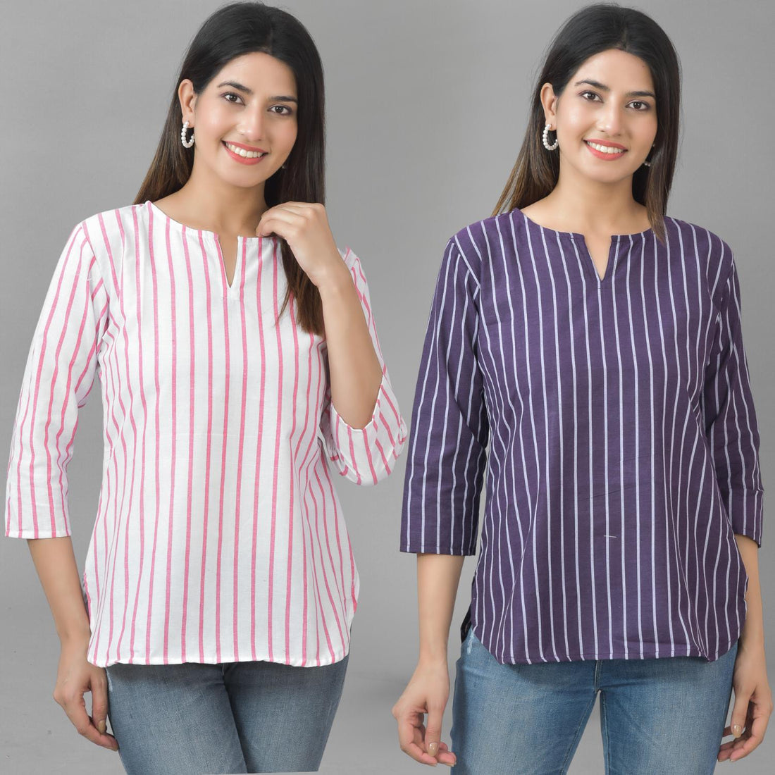 Our Set of Two Striped Cotton Women Tops Combo offers unmatched comfort and style. For stylish...
