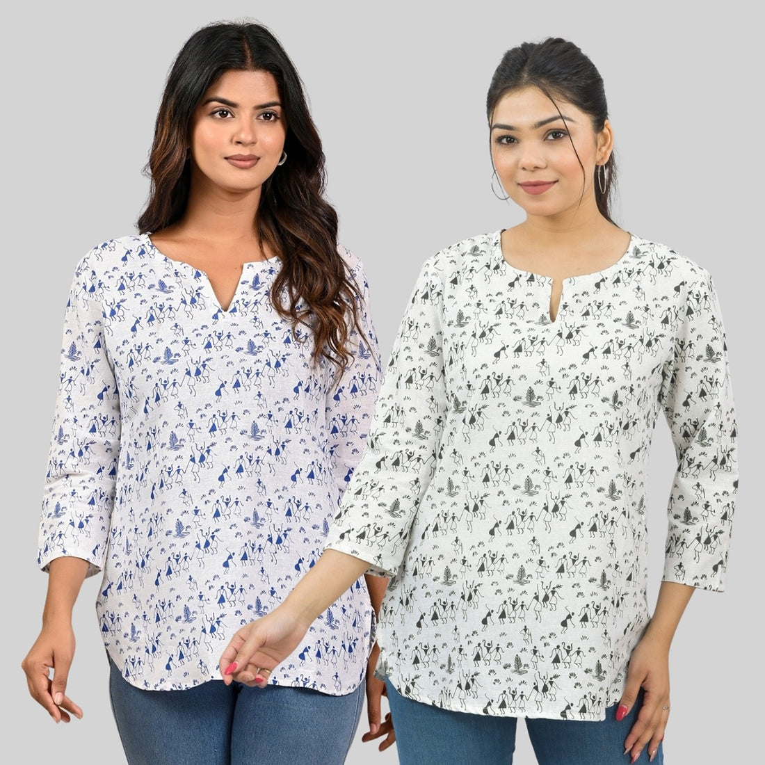 Pack Of 2 Womens Regular Fit Blue Vactor And Black Tribal Printed Tops Combo