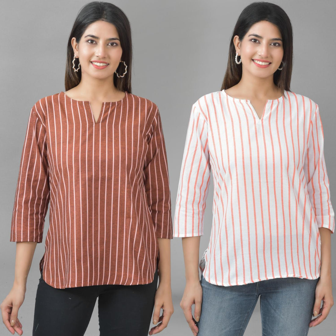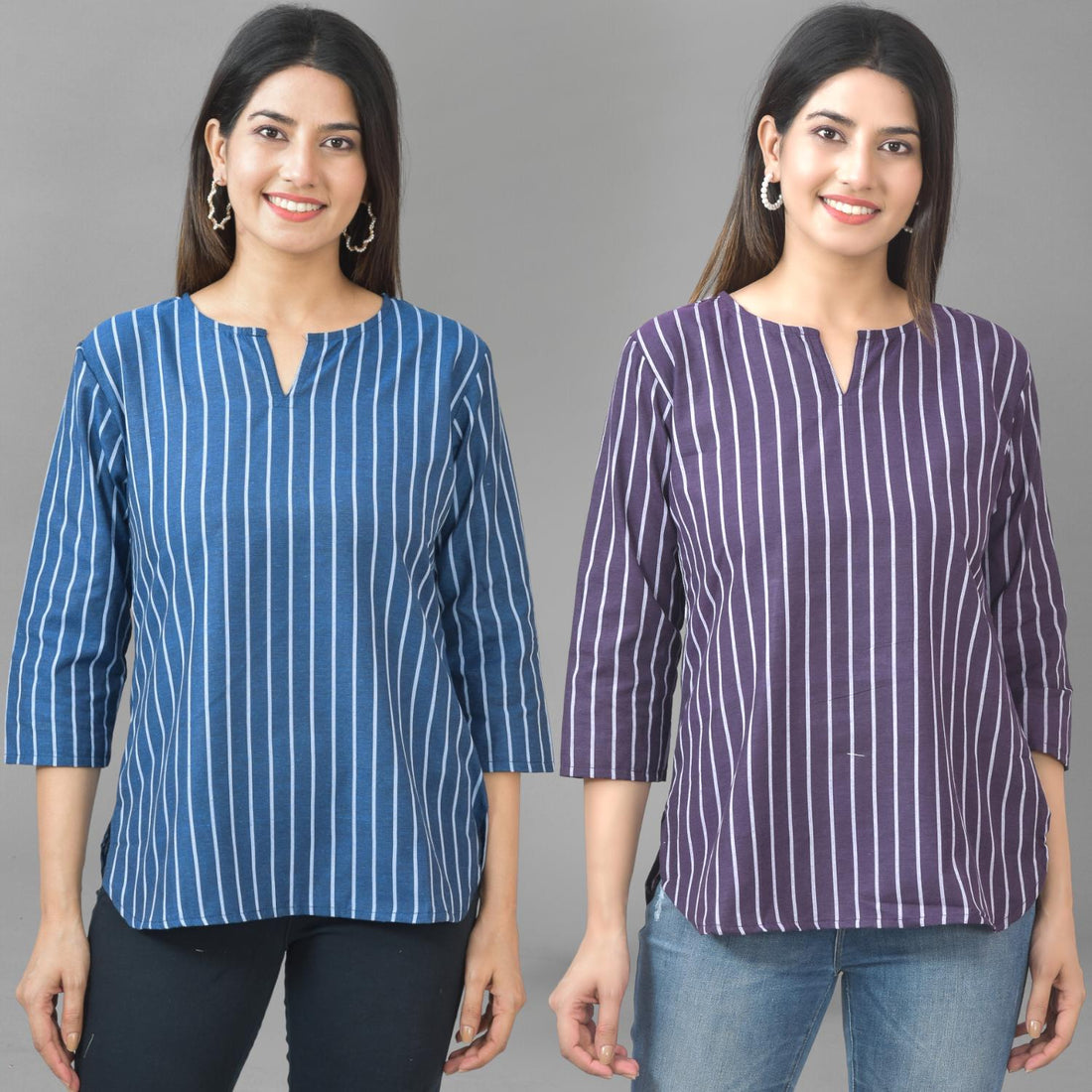 Our Set of Two Striped Cotton Women Tops Combo offers unmatched comfort and style. For stylish...