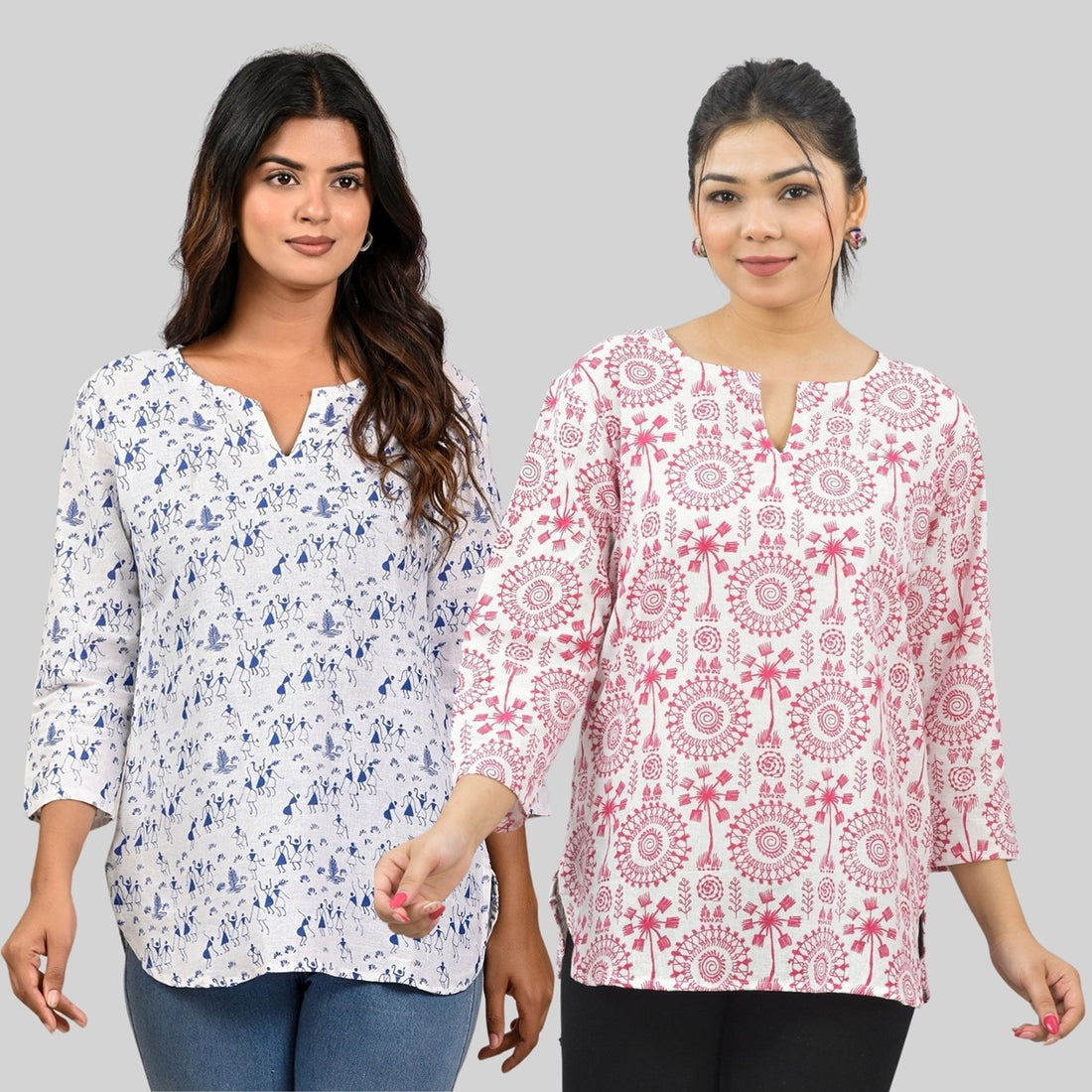 Pack Of 2 Womens Regular Fit Blue Vactor And Pink Tribal Printed Tops Combo