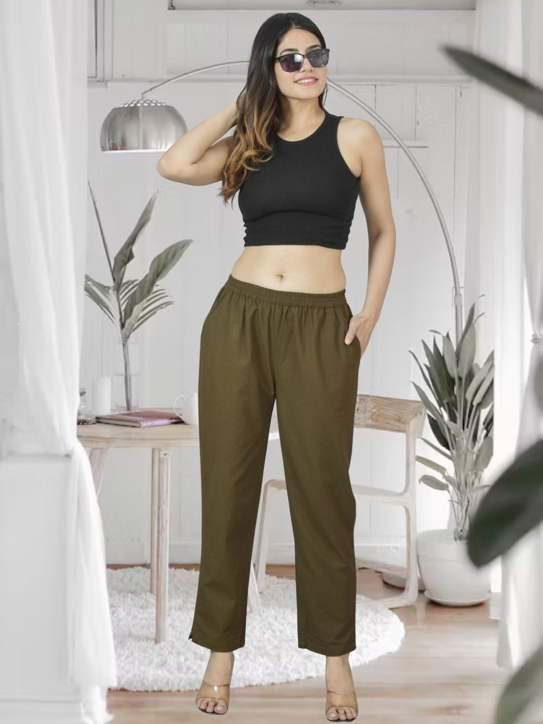 This Quaclo Mahendi Green Women Two Pocket Pure Cotton Trouser is a functional and fashionable...
