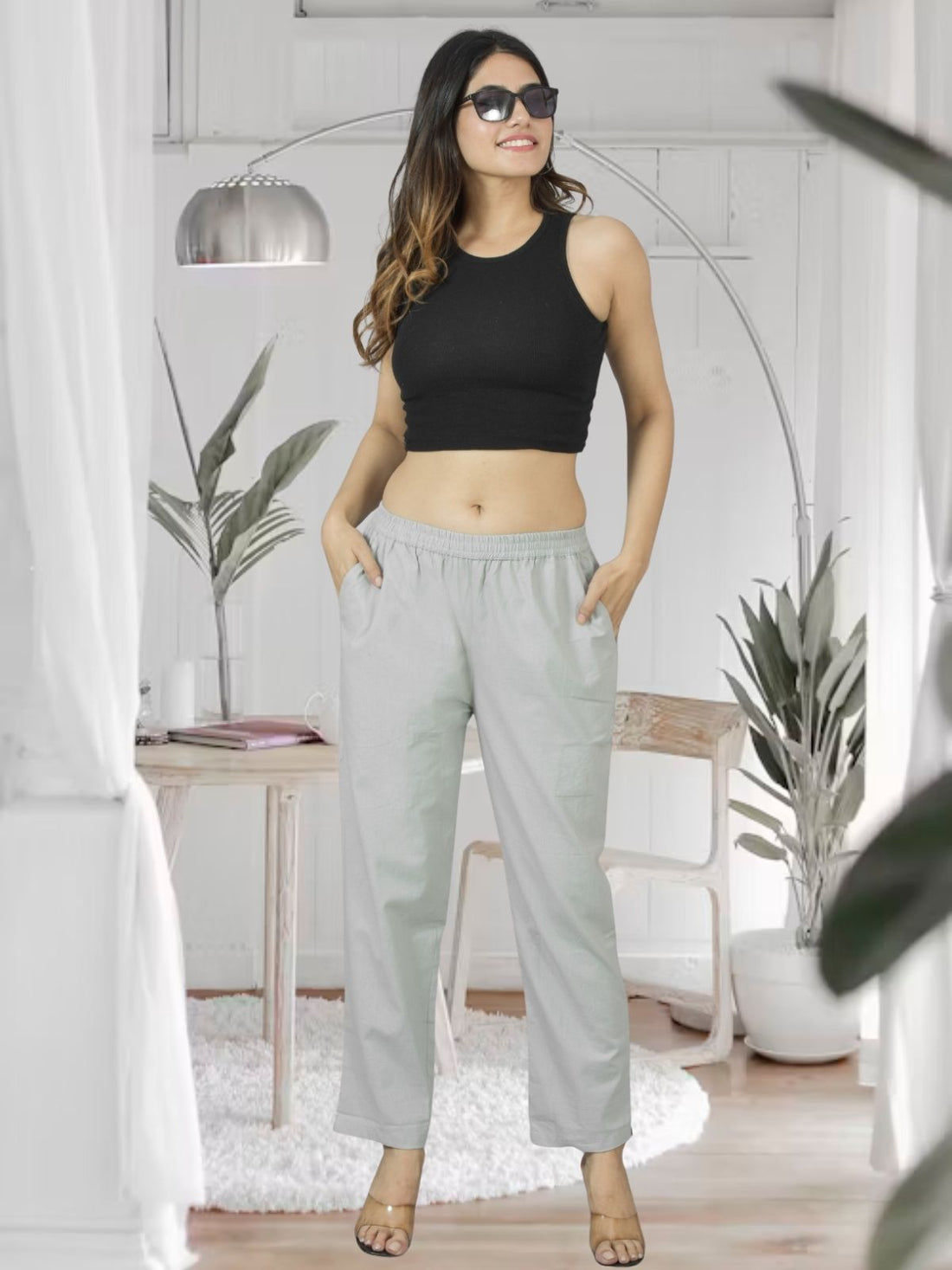 This Quaclo Grey Women Two Pocket Pure Cotton Trouser is a functional and fashionable addition...