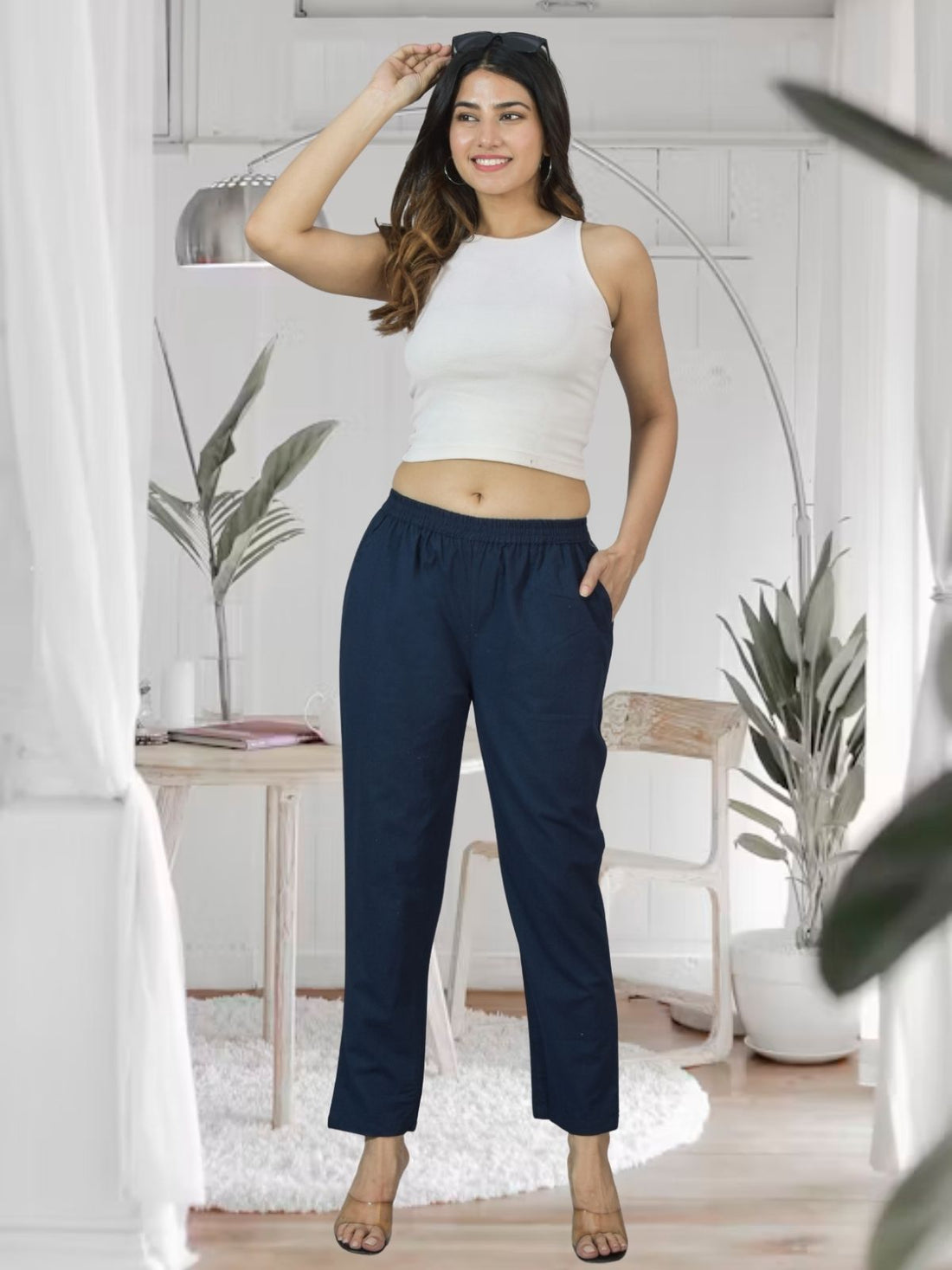 Navy Blue Fully Elastic Airy Linen Cotton Pants
