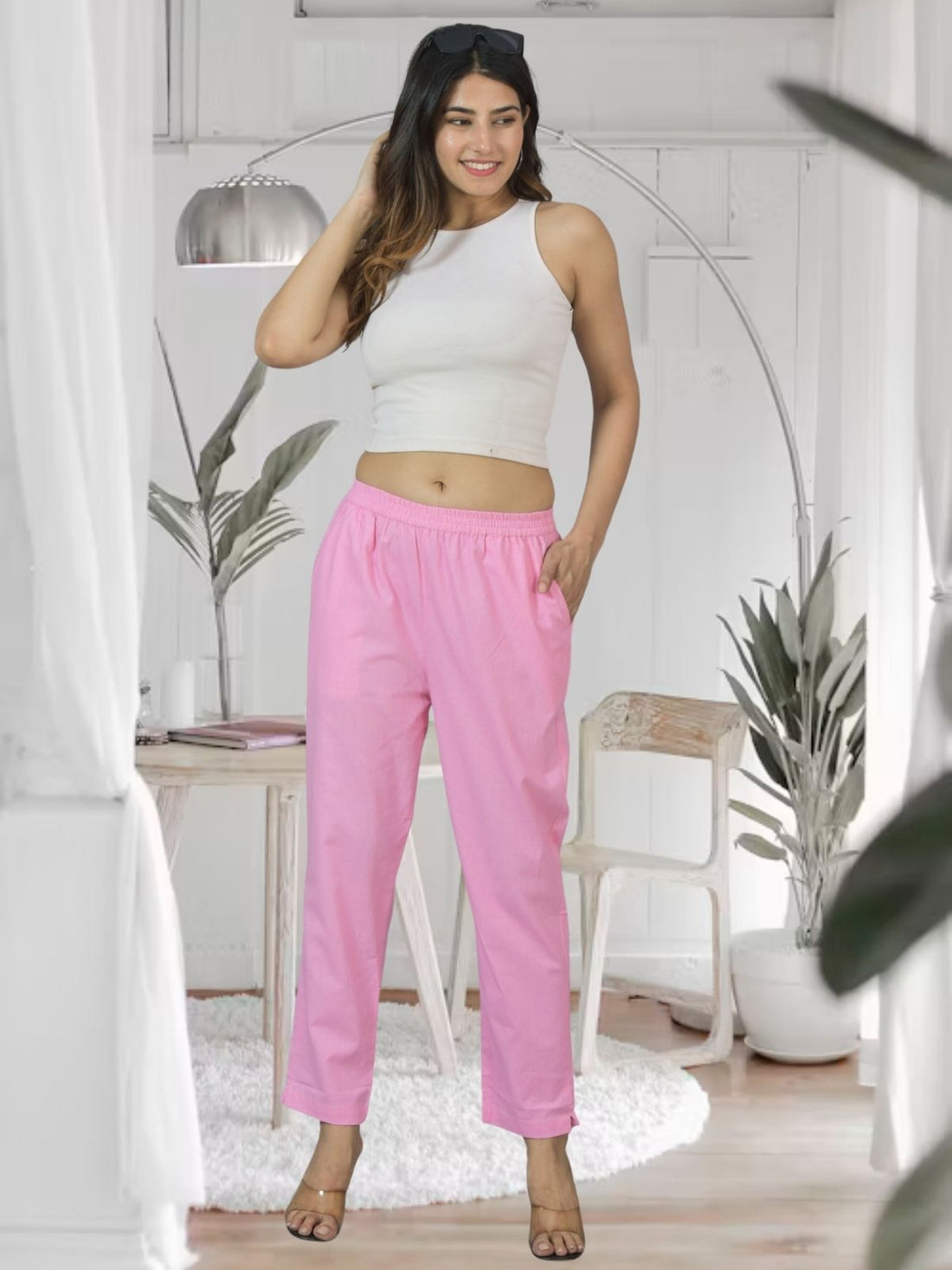 This Quaclo Pink Women Two Pocket Pure Cotton Trouser is a functional and fashionable addition...