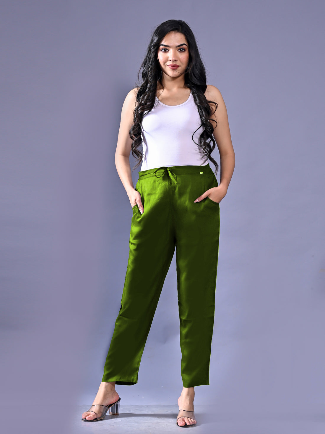 Women Regular Fit Mehndi Green Rayon Trouser