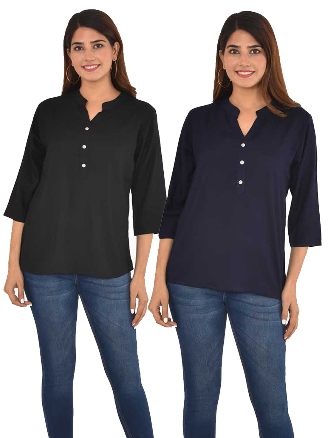 Pack Of 2 Women Black & Navy Blue Rayon Tops Combo