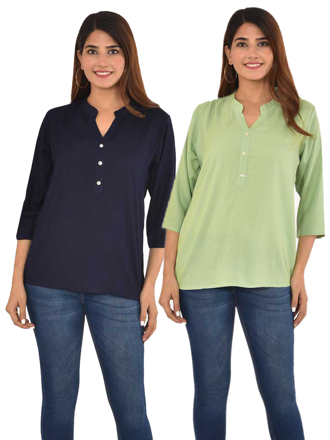 Pack Of 2 Women Navy Blue & Light Green Rayon Tops Combo