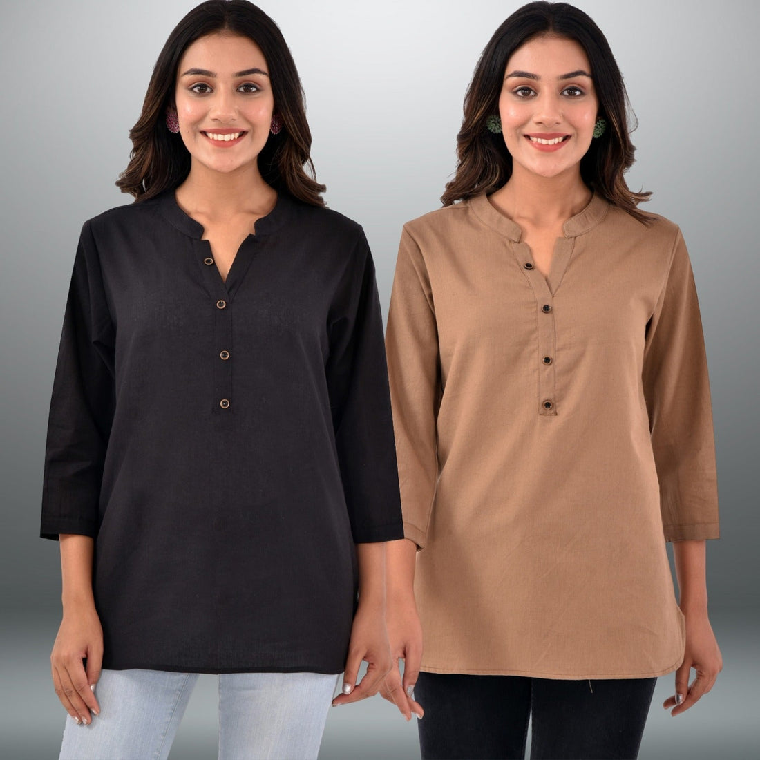 Pack Of 2 Womens Regular Fit Black And Brown Three Fourth Sleeve Cotton Tops Combo
